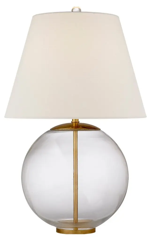The Morton Table Lamp by Visual Comfort Signature, formerly known as Visual Comfort, is big, bold, and beautiful, featuring a rustic spherical body topped by a tapered Linen shade. Both design elements work together to provide a warm, decorative ambiance that varies based on the selected finish. Ideal lighting for counters, nightstands, and reading tables.