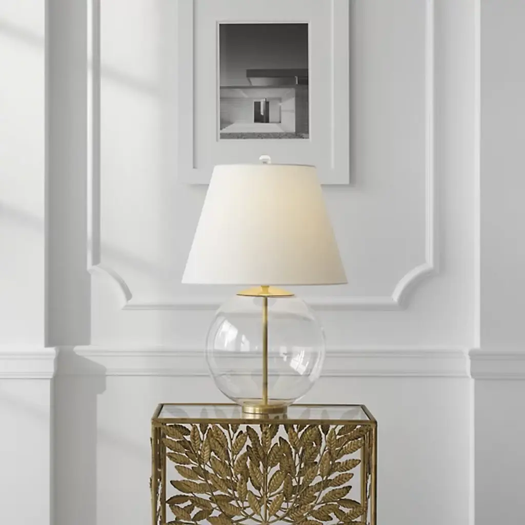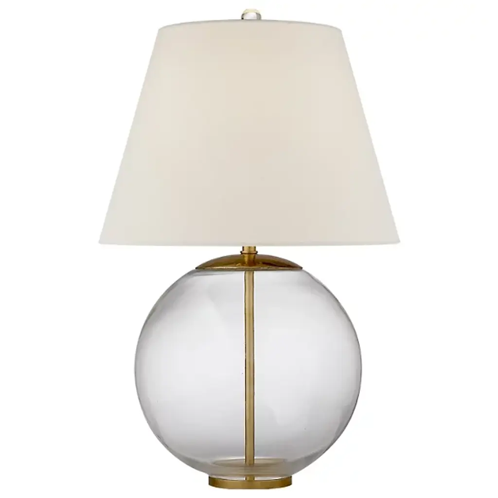 The Morton Table Lamp by Visual Comfort Signature, formerly known as Visual Comfort, is big, bold, and beautiful, featuring a rustic spherical body topped by a tapered Linen shade. Both design elements work together to provide a warm, decorative ambiance that varies based on the selected finish. Ideal lighting for counters, nightstands, and reading tables.
