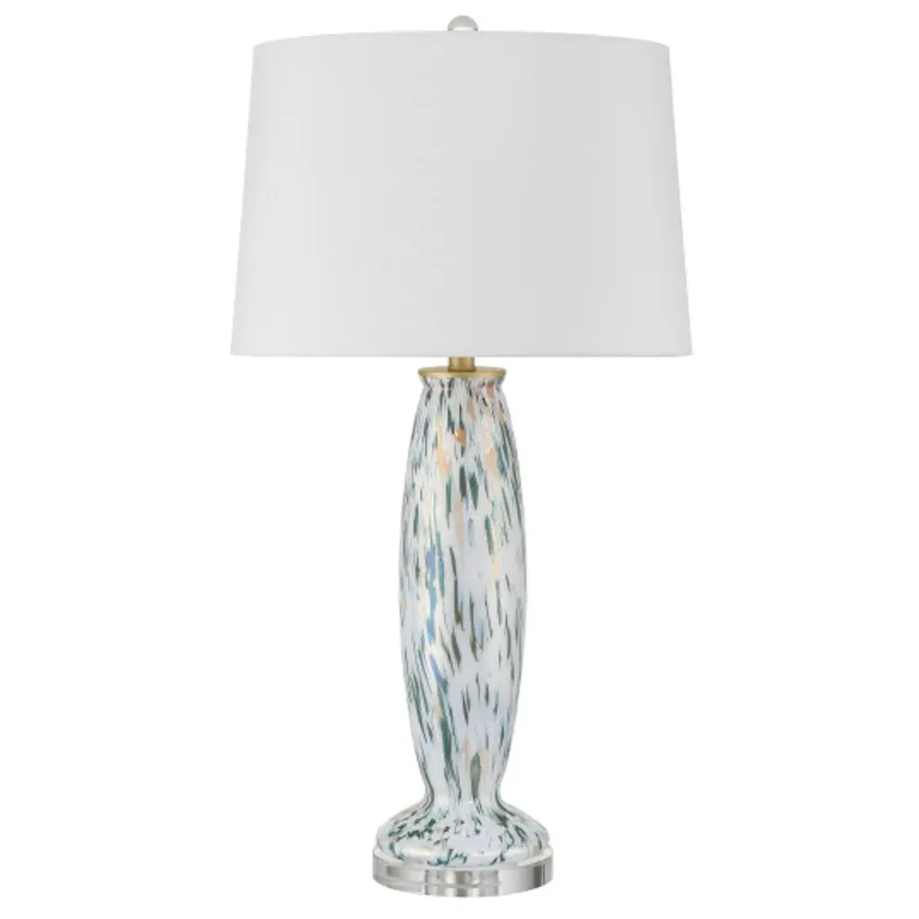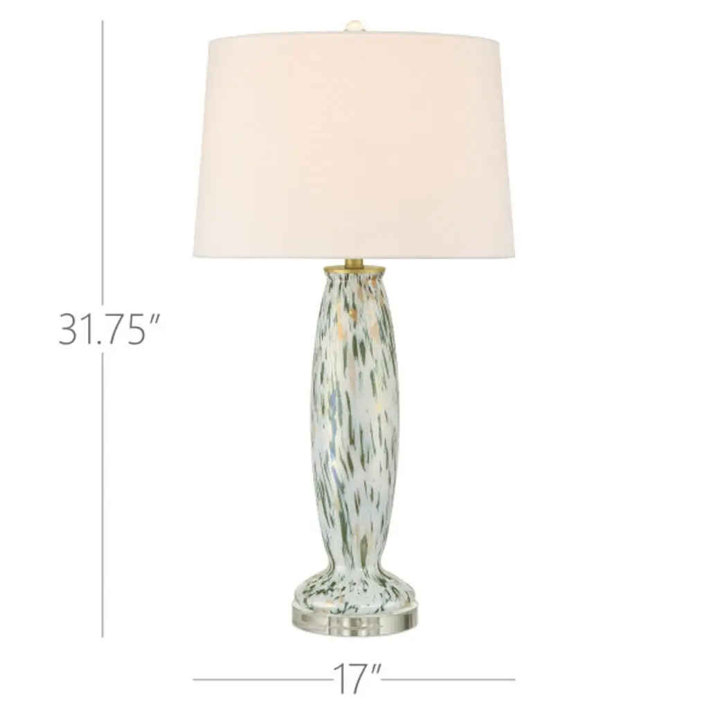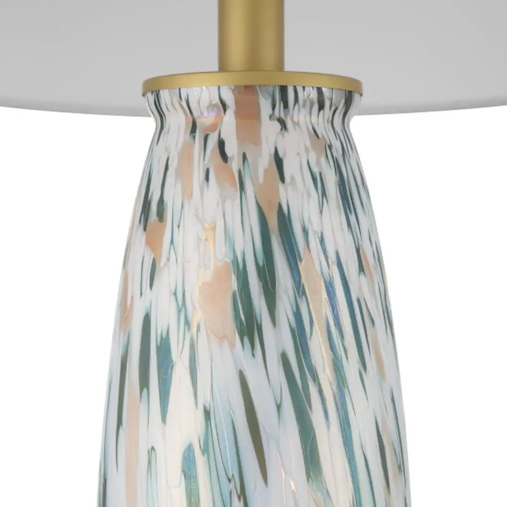 The Motte Table Lamp features a gleaming glass body with streaks that create a mesmerizing Easter-egg effect. This swirling pattern gives the lamp a strong sense of movement, achieved through a painstaking fusion of marbling and glass-fusing techniques. Topped with a pale shade, the lamp’s silhouette is inspired by the tallest vase ever created by celebrated French glassmaker Charles Schneider in 1925.