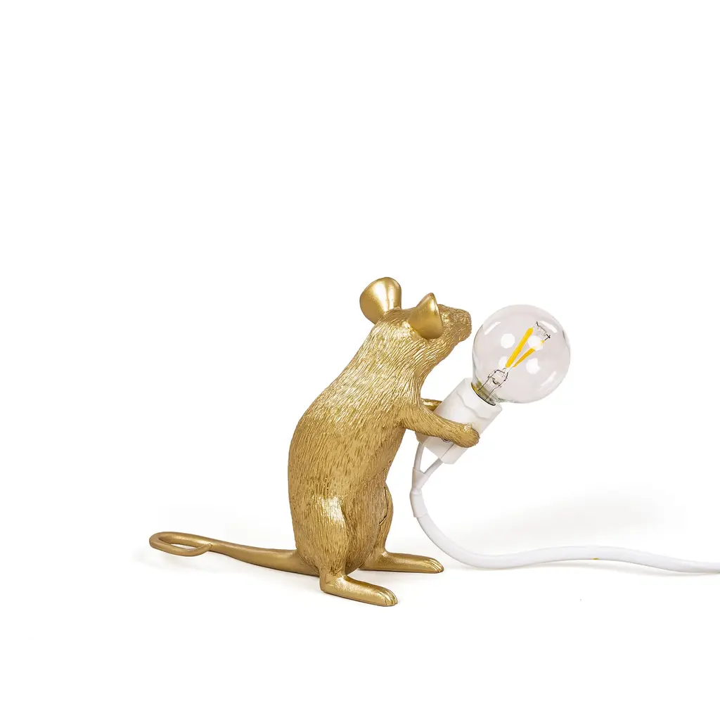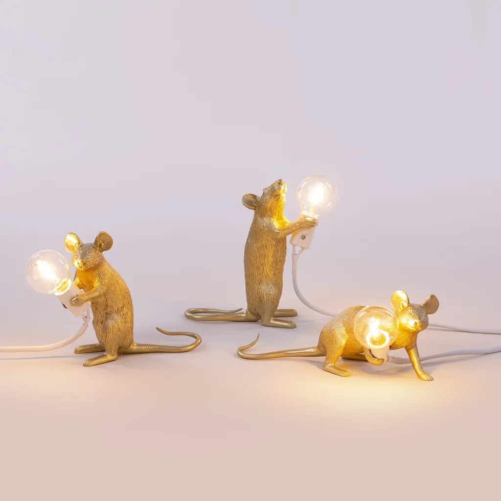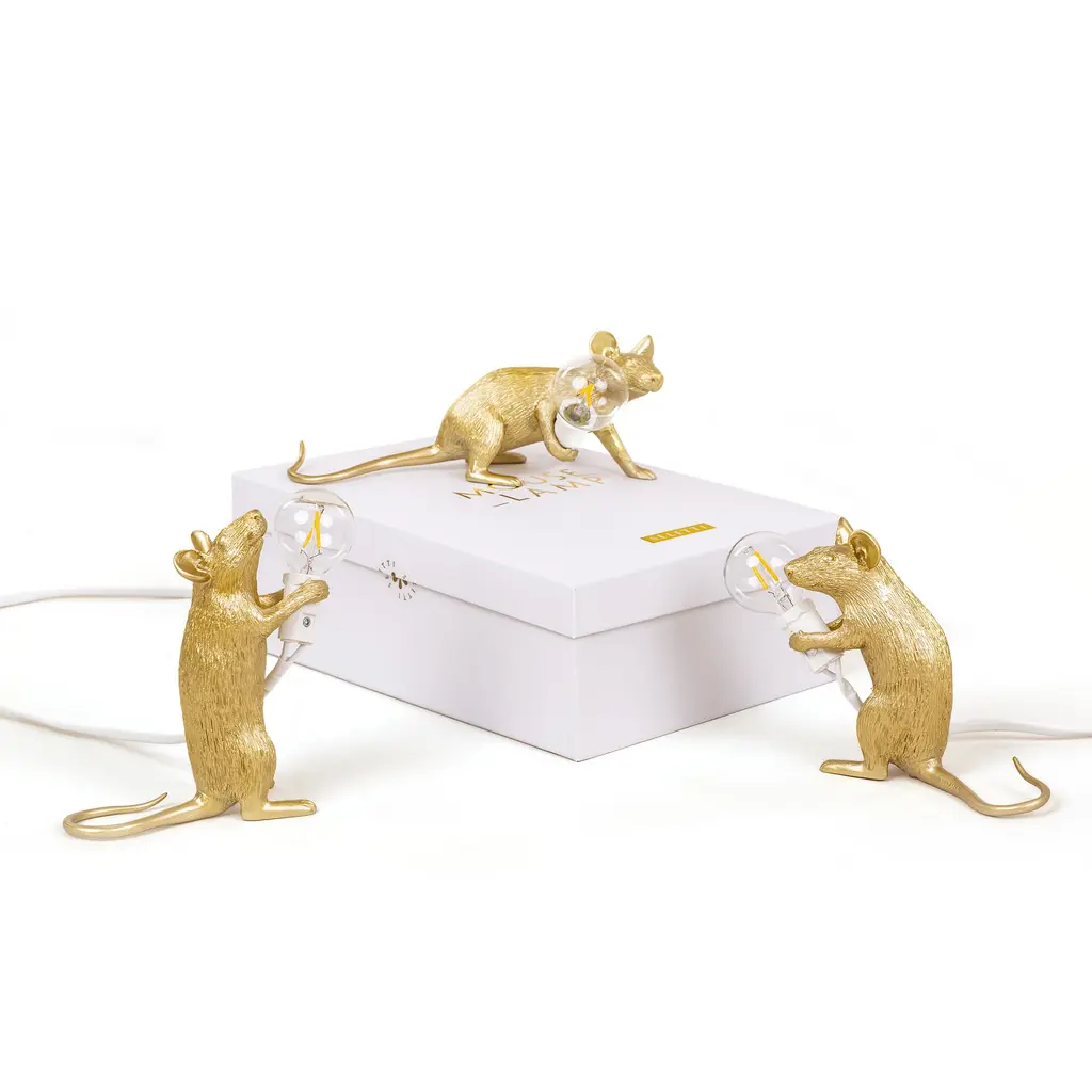 Make sure that your home showcases your own creative spirit with a sculptural and playful table lamp. Designed by Marcantonio for Seletti, the Mouse Lamp Gold – Sitting expands upon the popular animal-shaped lighting concept in a stylish way. The table lamp boasts a golden finish that adds more glamour to the realistic design. Holding the LED with both paws, the golden mouse brings the table lamp to life, helping you add a whimsy accent to your living space. A conversation starter, if there ever was one. Complete this charming set with the sitting and lying down versions of the same design.