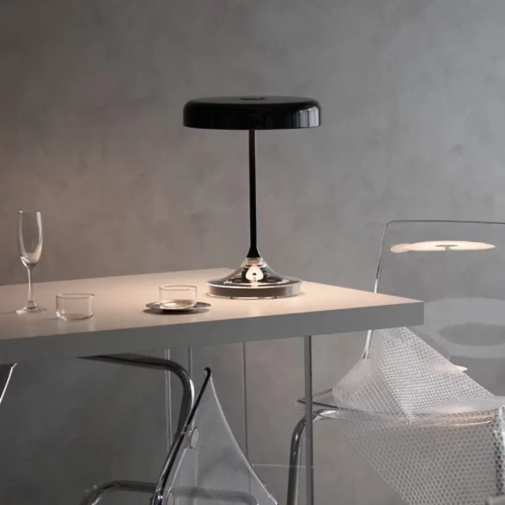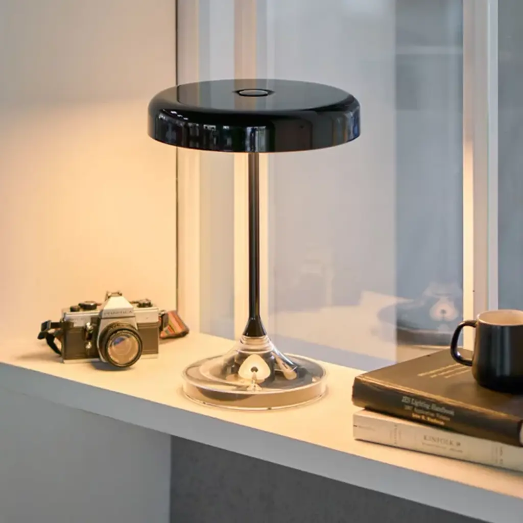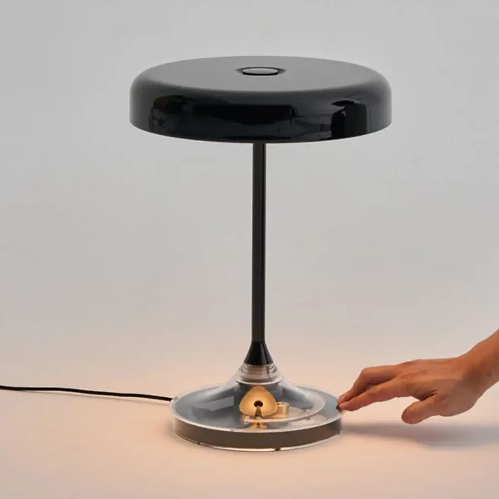 The Mr. DJ LED Table Lamp from Seed Design brings a playful yet sophisticated touch to any surface it's set on. This lamp replaces traditional switches with a dynamic design, featuring a rotating base to turn on and geared clockwork visible for adjusting the brightness. The translucent base shows off intricate, genuine brass gears reminiscent of a precision clock. Constructed from PMMA, brass, and steel, it merges modern innovation with mid-century modern charm, creating something that is at once functional and visually captivating.