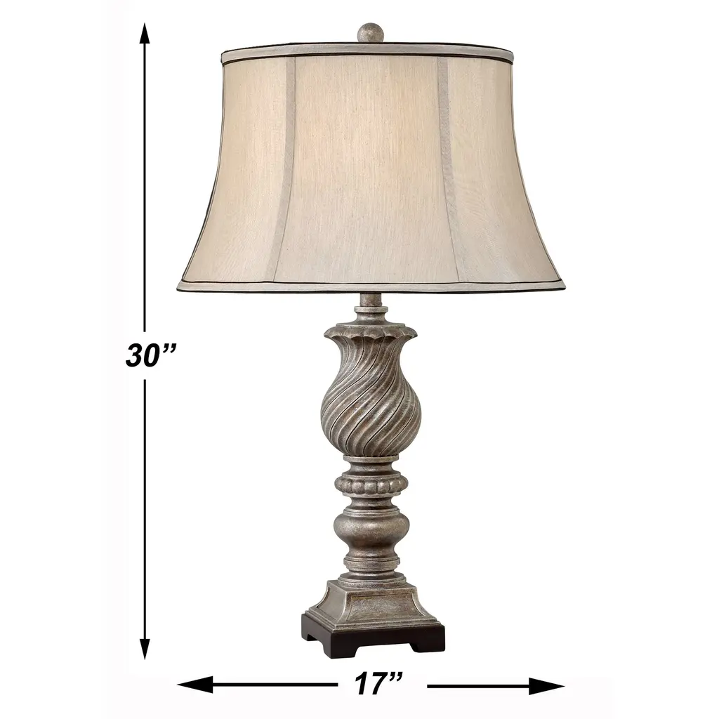 Mulinello Table 30 In. Aged Silver With Black Table Lamp - Set Of 2