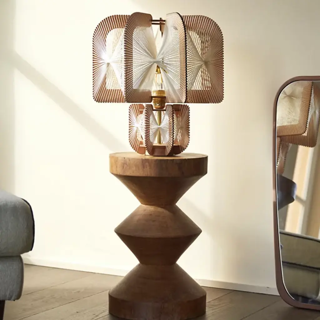The Muljee Twist Table Lamp With Woven Base from LaFabLight offers a cozy ambiance paired with a light, refined design that enhances but does not overpower its surroundings. Its rounded shade is handwoven in France from cotton ribbons stretched over smooth wooden ribs. The unique “Twist” pattern of the cotton threads sculpts the inner light as it filters through the shade, combining decorative and practical elements in a single package. The fixture is light and easy to move wherever ambiance is needed. The traditional materials, expressing a sculptural style, enhance the wood’s organic curves and the shade’s web-like strands.