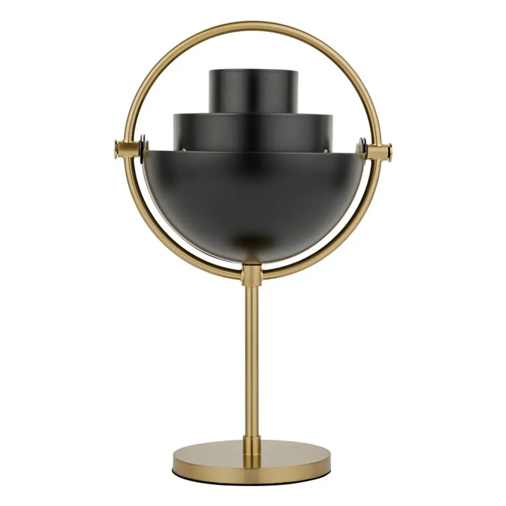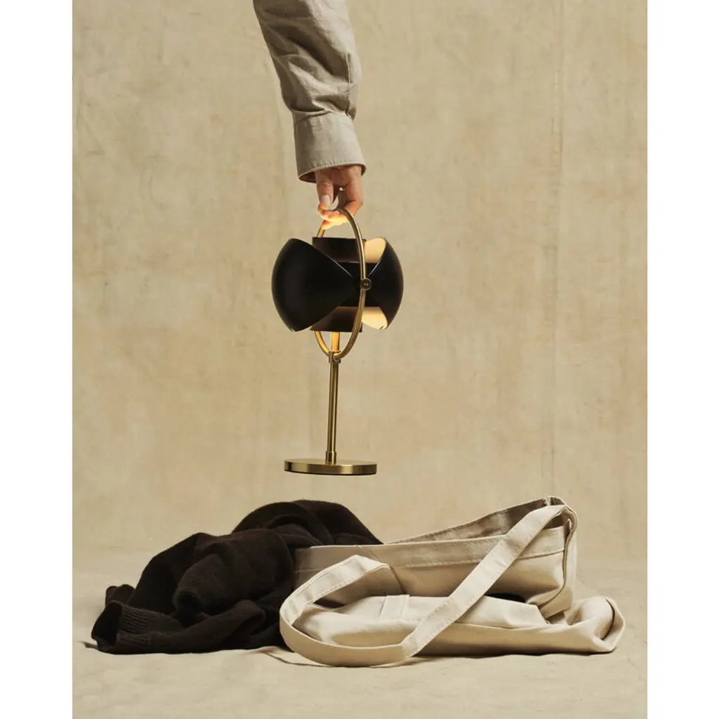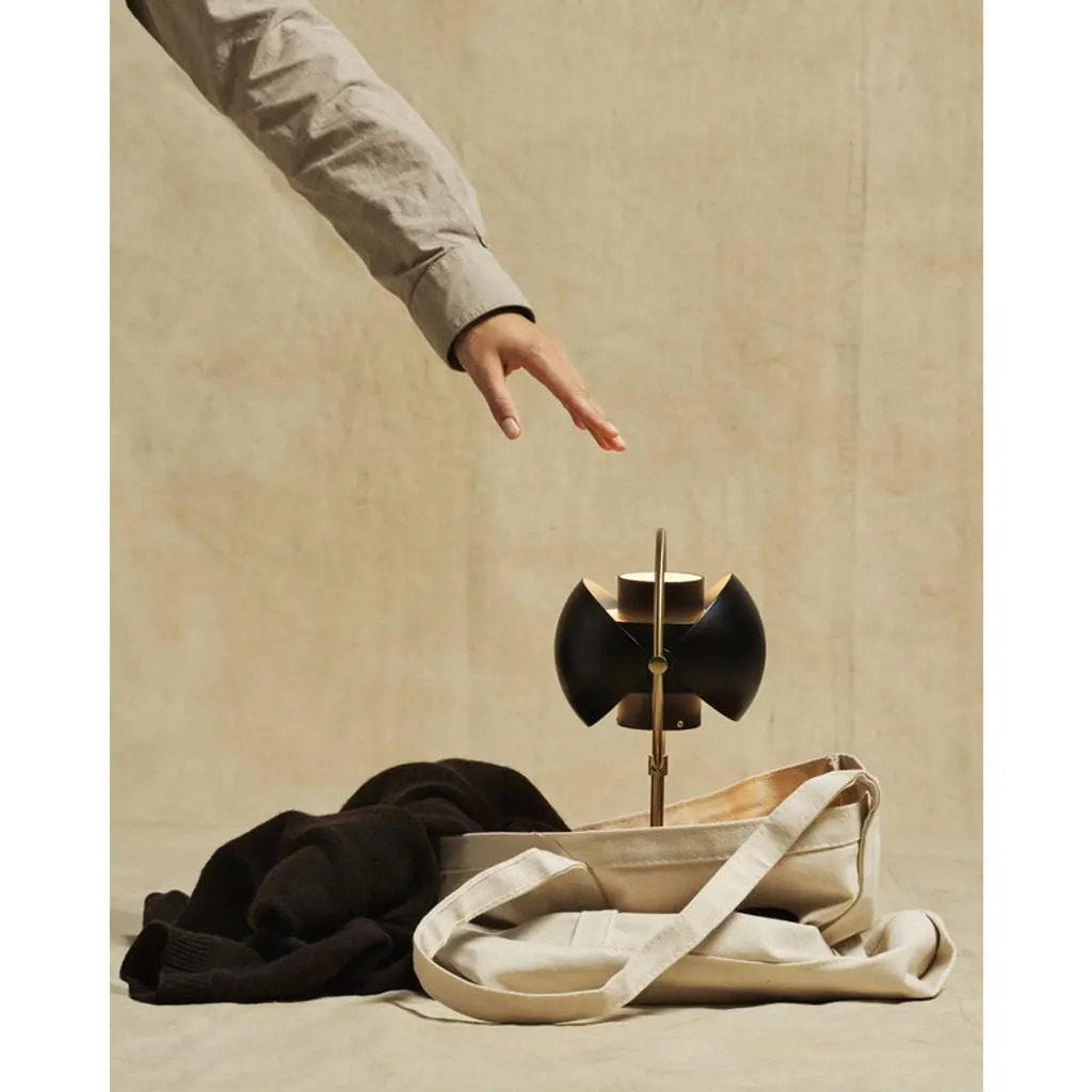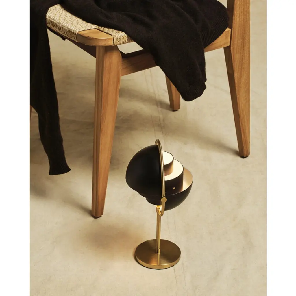 GUBI's portable Multi-Lite is a cordless version of a beloved table lamp, designed by Louis Weisdorf in 1972, playing with elegant geometric shapes. As its name suggests, the lamp has multiple uses and configurations: by rotating the two shades around the cylindrical middle light can be cast up, down and to the sides. Manufactured originally by Danish Lyfa, Multi-Lite features a timeless and sculptural metal design that makes a bold addition to many kinds of interiors. The wireless table lamp provides light at full setting for up to six hours.