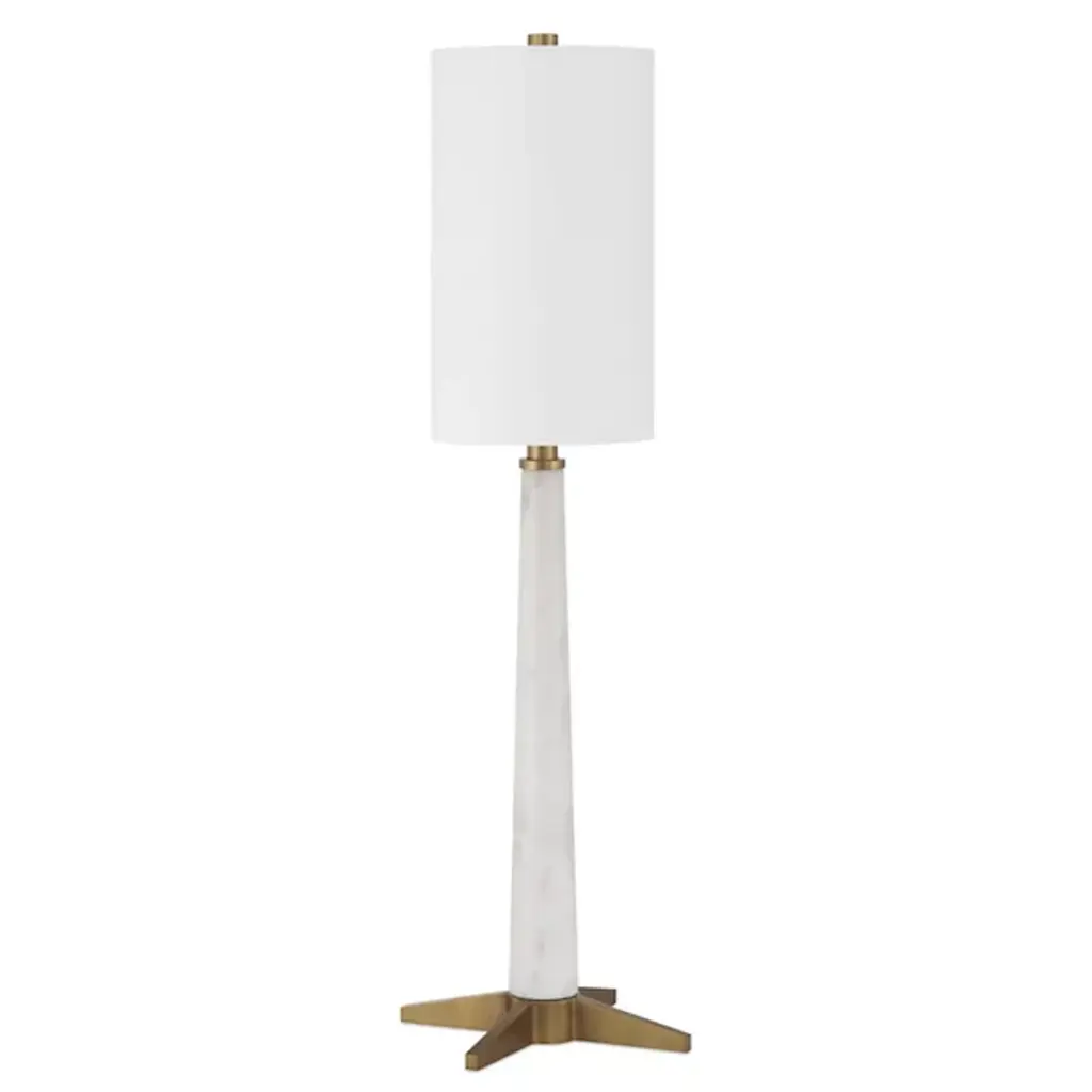 The Munroe Table Lamp from Currey & Company channels the streamlined design principles of 1920s and 1930s Art Deco through a minimalist, contemporary lens. An X-style base stabilizes the telescoping body, which is made from marble with natural veining, ensuring no two pieces are exactly alike. Created with space efficiency in mind, it demonstrates how historical design movements can be adapted for modern interiors while maintaining their essential character and proportion.