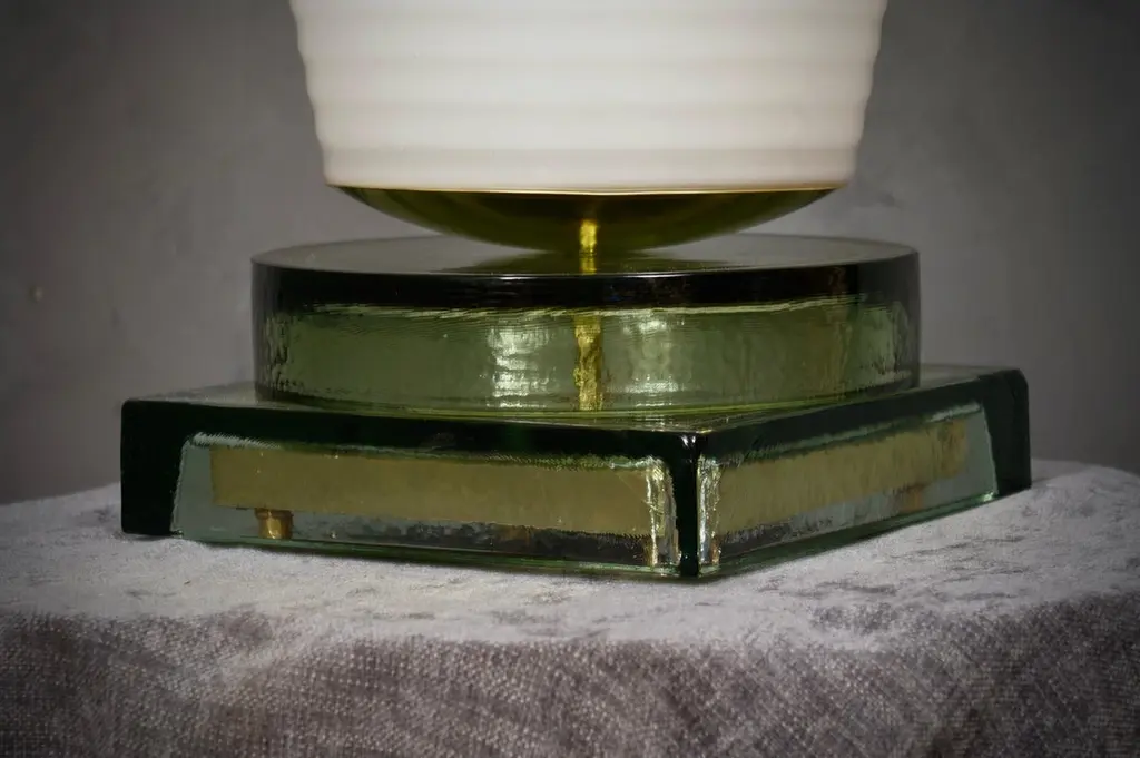 Murano In Style Of Vistosi Blown White Glass And Brass Table Lamp, 1980
