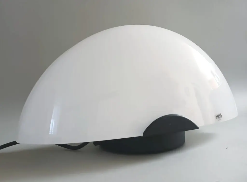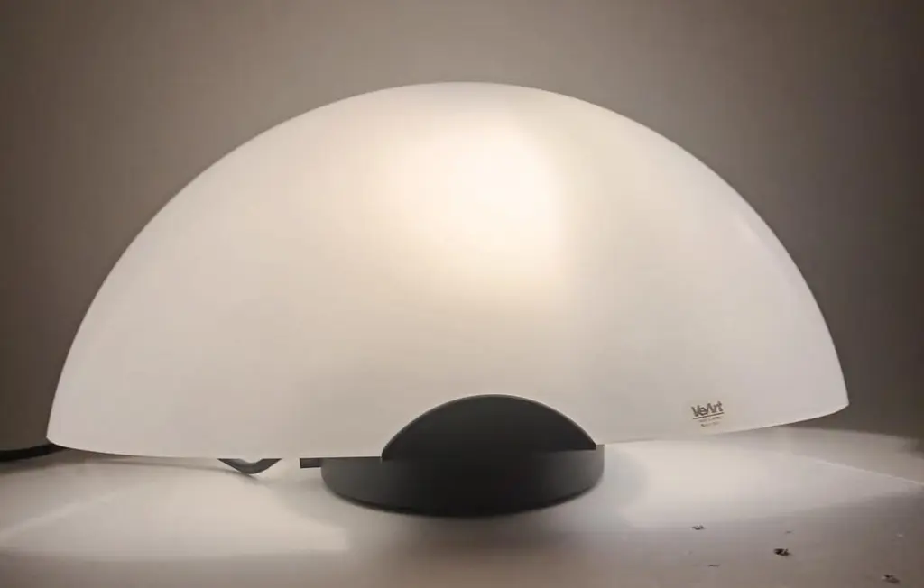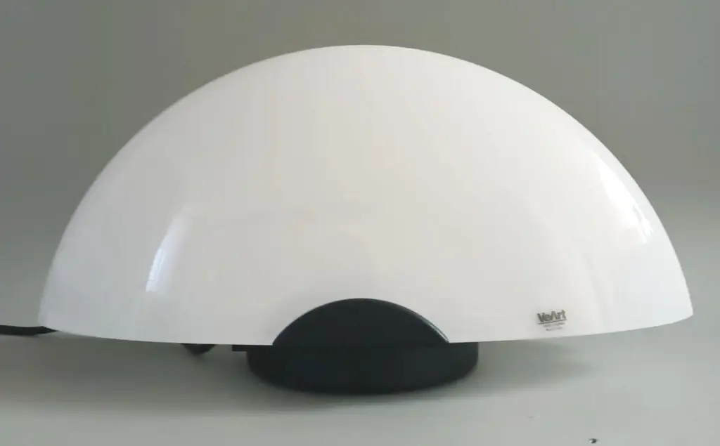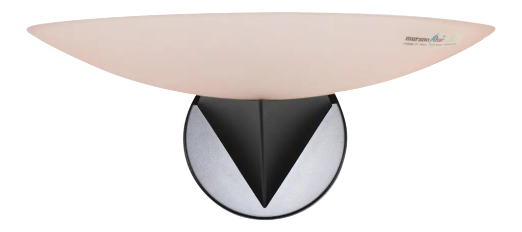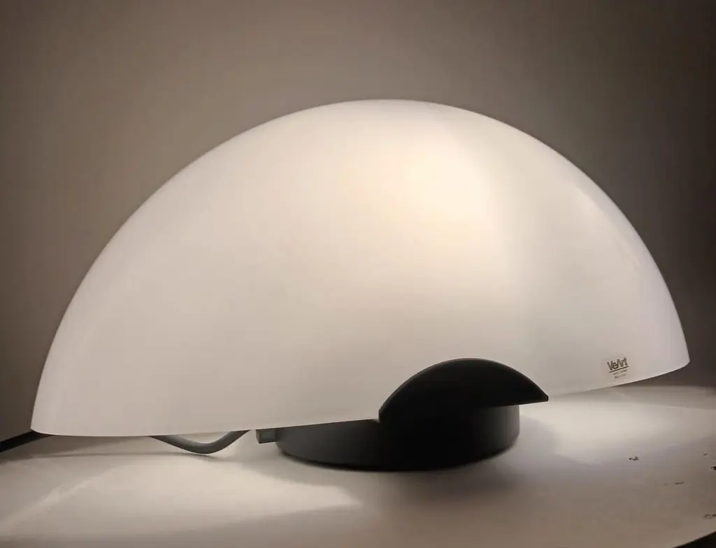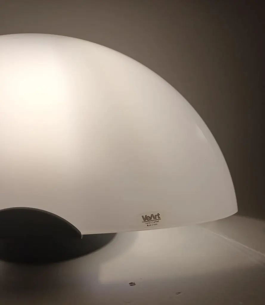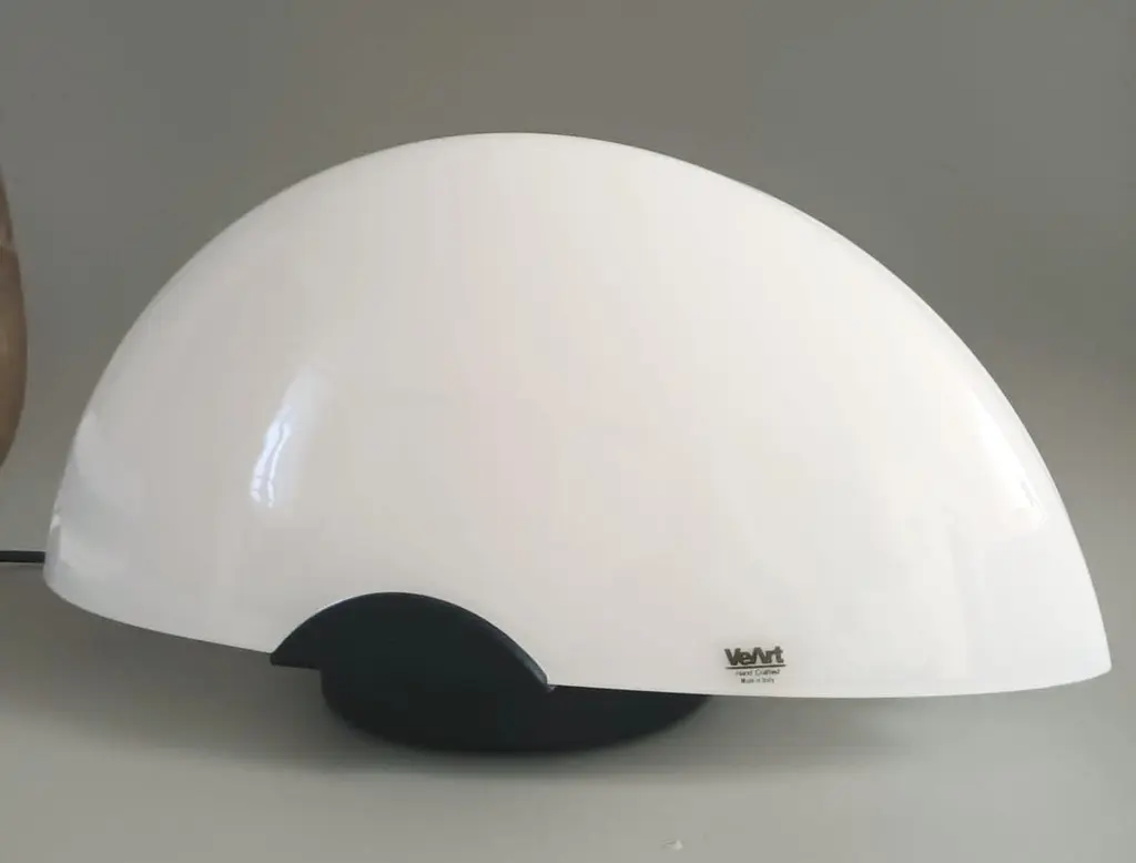Vintage Italian table lamp with a milky white half-moon Murano glass shade mounted on black structure / Made in Italy by VeArt, circa 1960sOriginal sticker on the glassMeasures: height 7.5 inches, width 16 inches, depth 7 inches1 light / E12 or E14 type / max 40WOrder reference #: FABIOLTD H139.