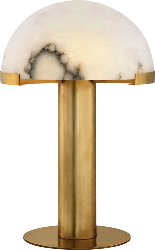 Exuding Mid-Century Modern appeal, Table Lamp Absolute is sure to impress in every living space. It will captivate you with its dome-shaped antique brass lampshade and gray marble base with alcoves on all 4 sides.