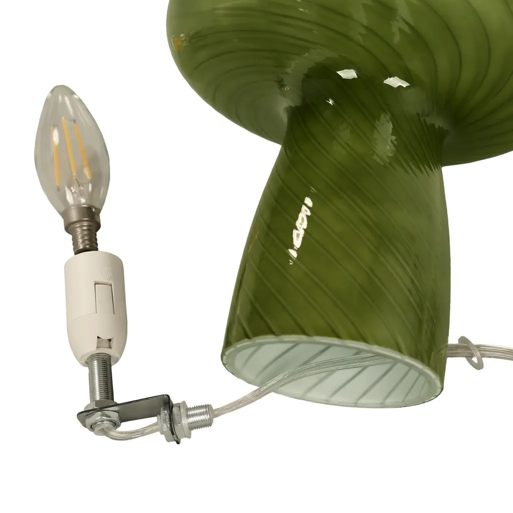Having a mushroom table lamp would be like what? A great designed cute mushroom outlook, placed in your room. Frosted glass inside, creates a cozy, warm illumination. Smooth glass outside, giving the whole lamp a glossy surface and also keep it cool all the time. Energy saving, saves you lots of bills compare to traditional light bulbs. And also, more and more love to the lamp. Features: Dimensions: