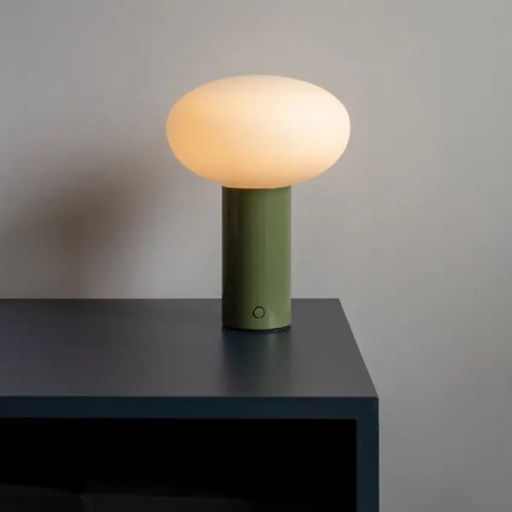 The Mushroom Table Lamp by In Common With puts a modern twist on more traditional lighting. Starting simply, its rounded, mushroom-shaped diffuser expresses elegance and minimalist charm, the hand-blown glass diffuser making each lamp unique. The diffuser rests on a sleek cylindrical body in various colors, offering a captivating visual contrast. A direct design grounded in timeless design principles, this fixture prioritizes functionality and simplicity over mere passing trends, ensuring enduring appeal in any setting.