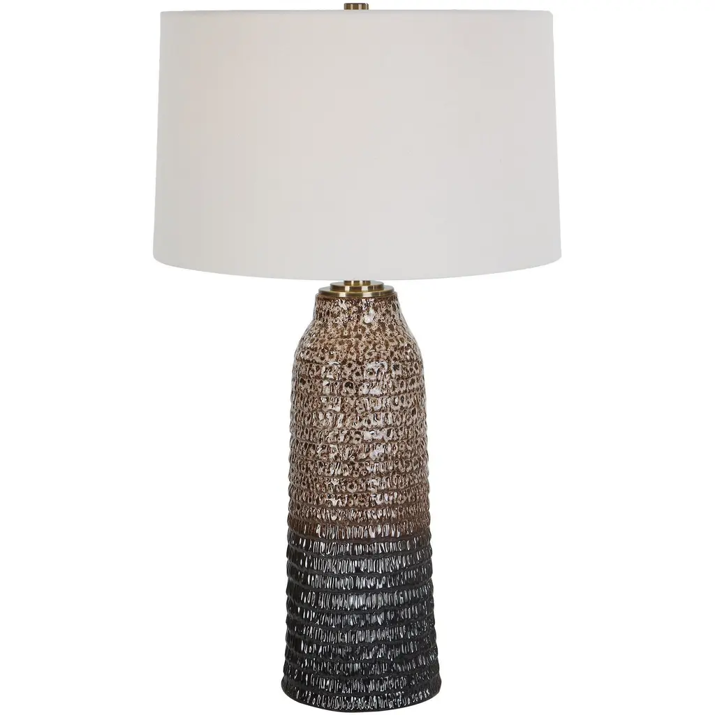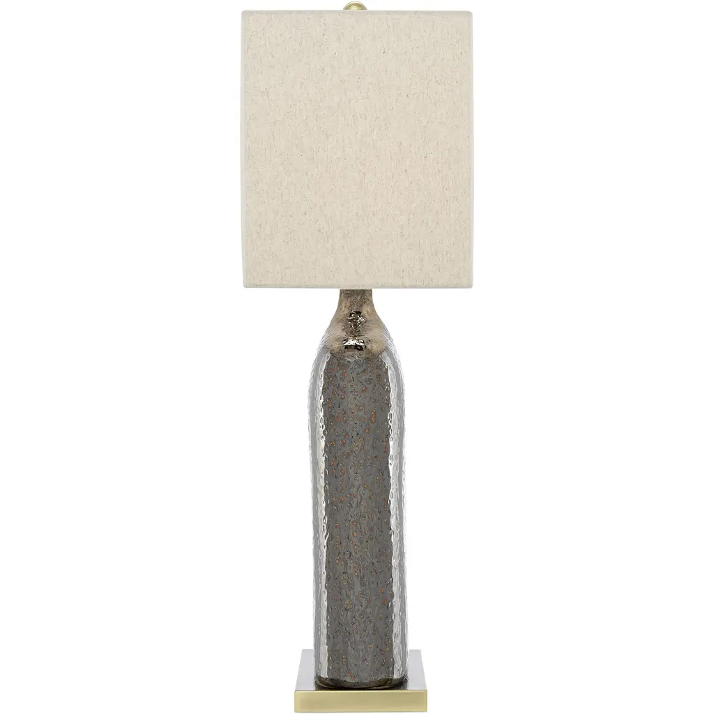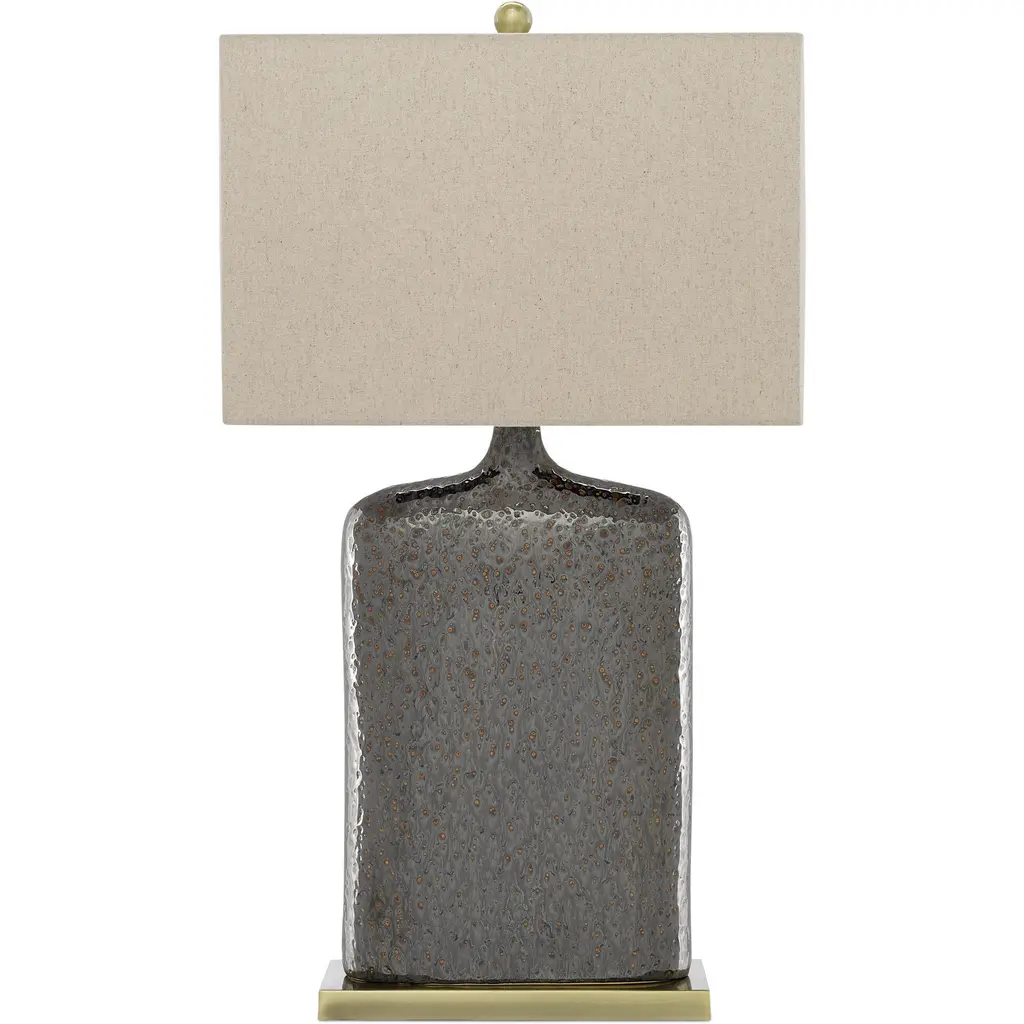 Like a lovely oversized flask of light, the rustic metallic bronze glaze on the Musing Table Lamp could cause unrestrained bouts of contemplation when the light is switched on. The natural pitting of the glaze adds interest to the distinctive shallow depth of its elongated body, as does the metal plinth-like base that has been treated to a bronze finish for resonance. The lamp is topped with a khaki linen shade to make it a composition you will enjoy contemplating.