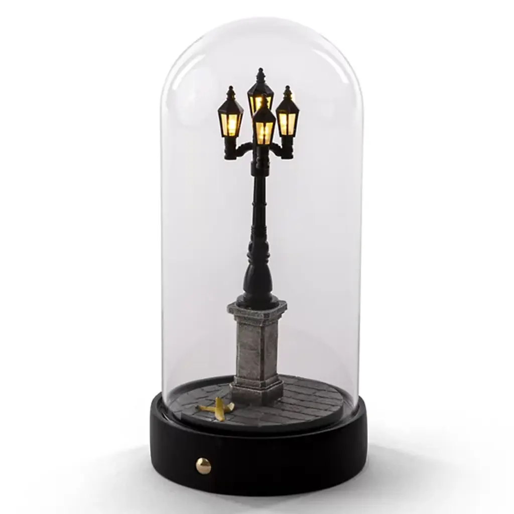 The My Little Corner Resin LED Table Lamp from Seletti is a contemporary piece designed by Marcantonio. This enchanting lamp brings the charm of a quaint town to life with its innovative street lamp design. Crafted with precision from high-quality resin, the lamp features a dome-shaped glass shade, adding a touch of sophistication to its whimsical aesthetic. This practical lighting solution is illuminated by an integrated LED that is dimmable using a separately sold ELV dimmer.