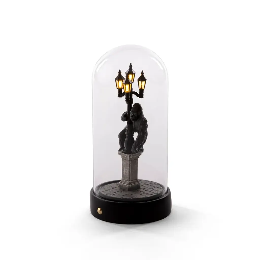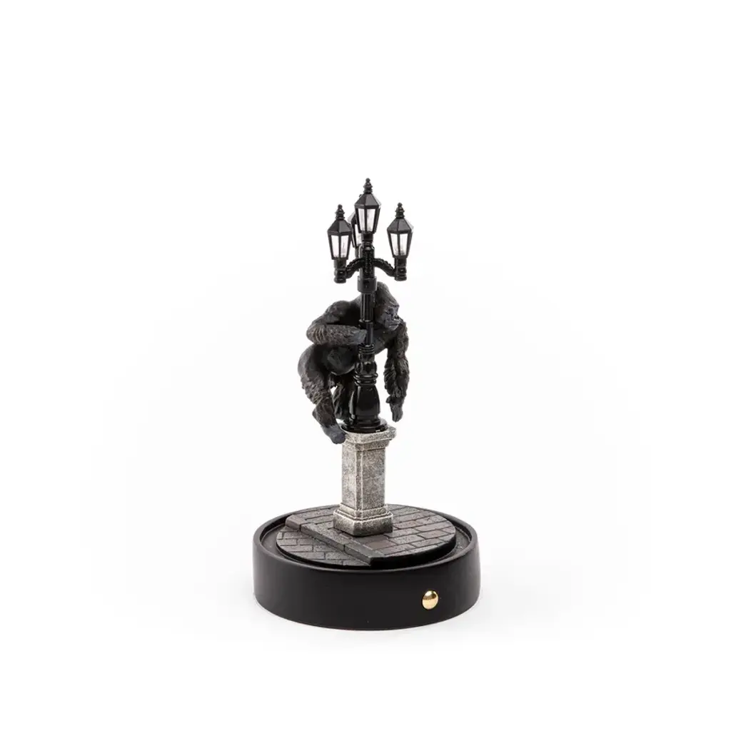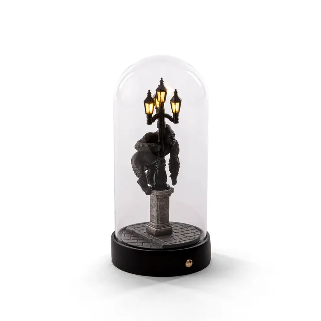 The protagonist of the jungle has arrived in the city and watches over the neighborhood from its street lamp.Table LampMaterial: Resin, GlassEU version: Input 220V Output 5V – 50hz EX version: Input 110/230V Output 5V – 60h