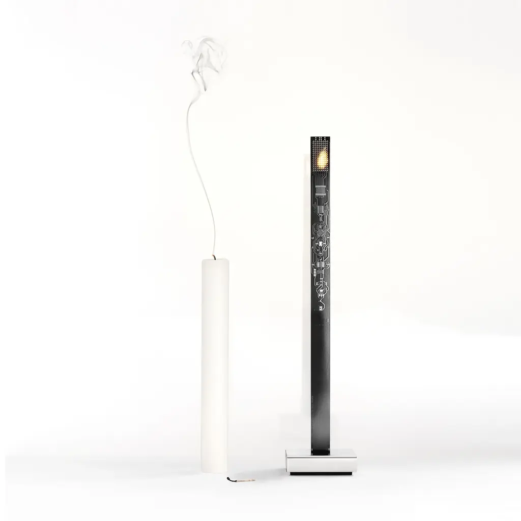 Create a stunning ambiance with the My New Flame Portable LED Table Lamp from Ingo Maurer. Crafted with 256 LEDs across a slim circuit board, the realistic flames offer a unique display of modern romance. Perfectly portable with the rechargeable battery or USB cord, enjoy the sophisticated and luxurious flicker of a modern flame. Highlights