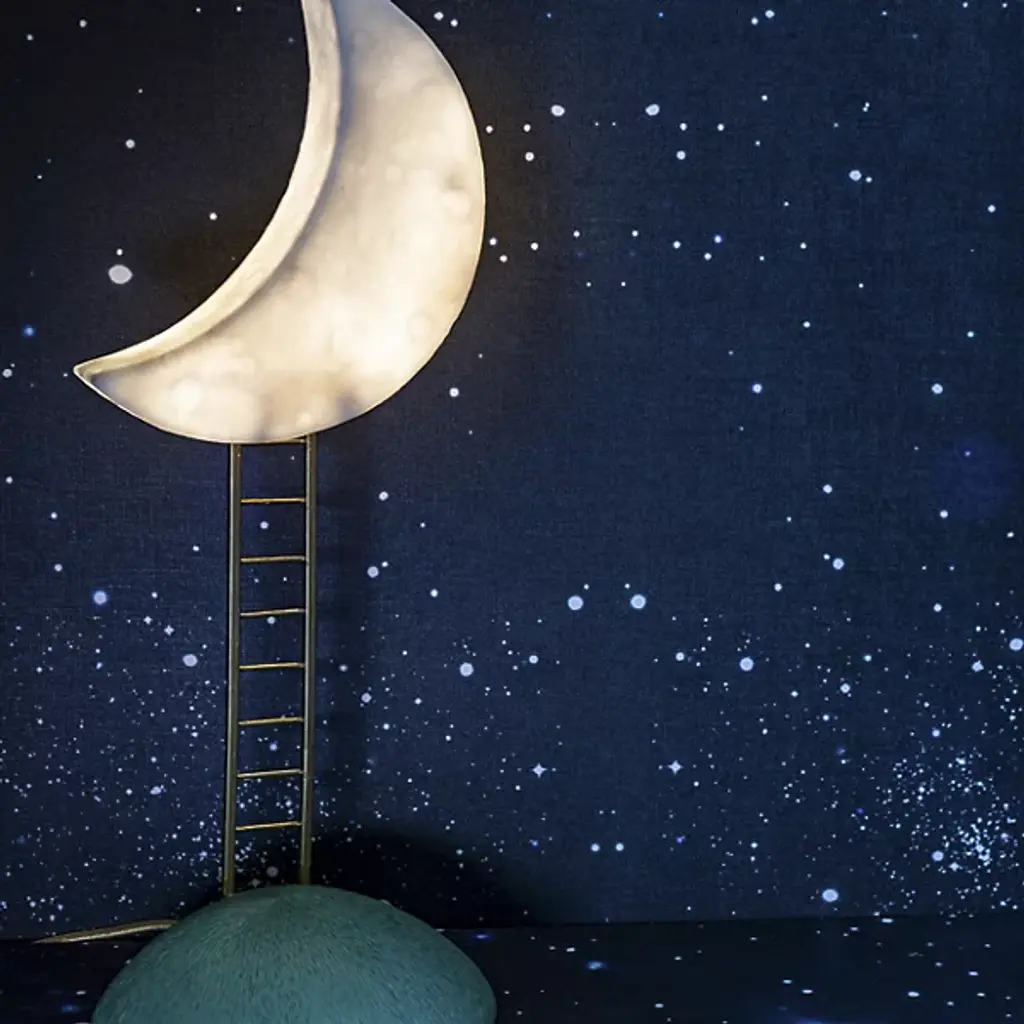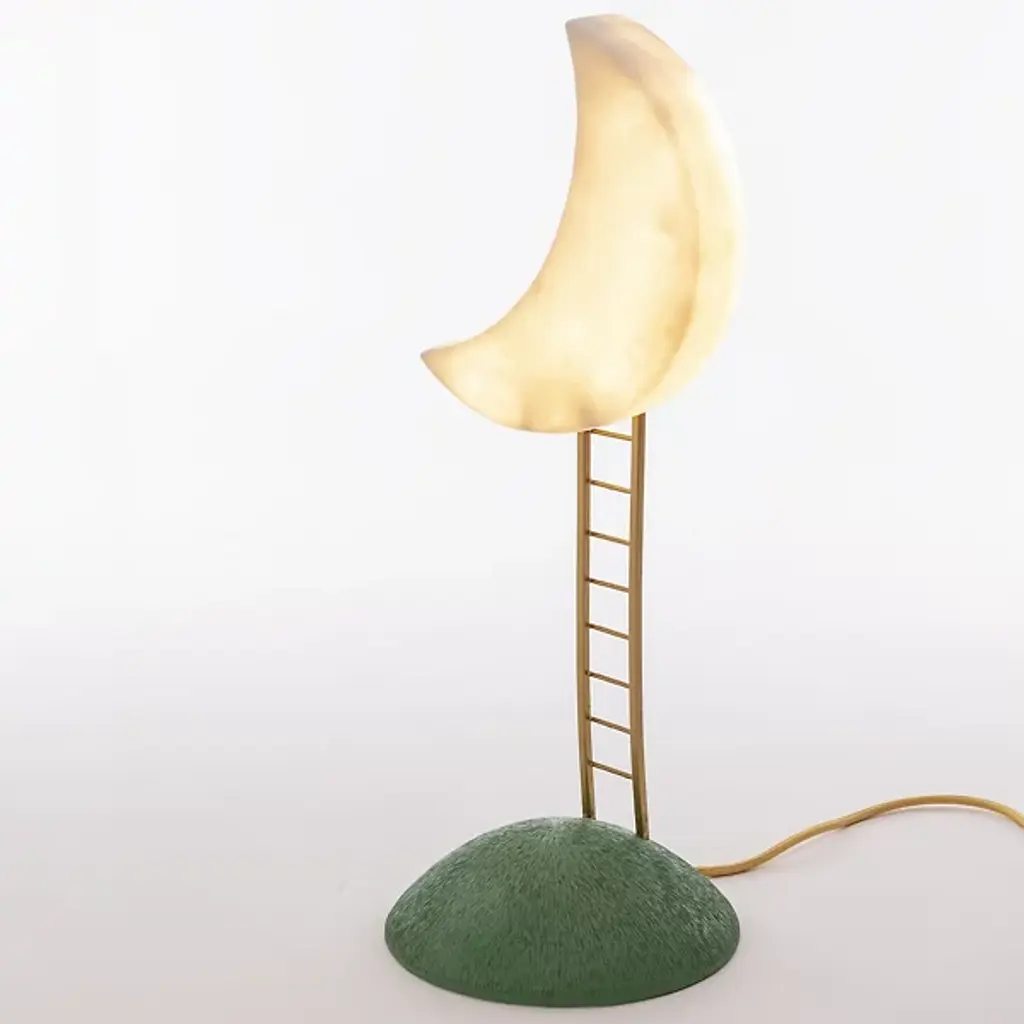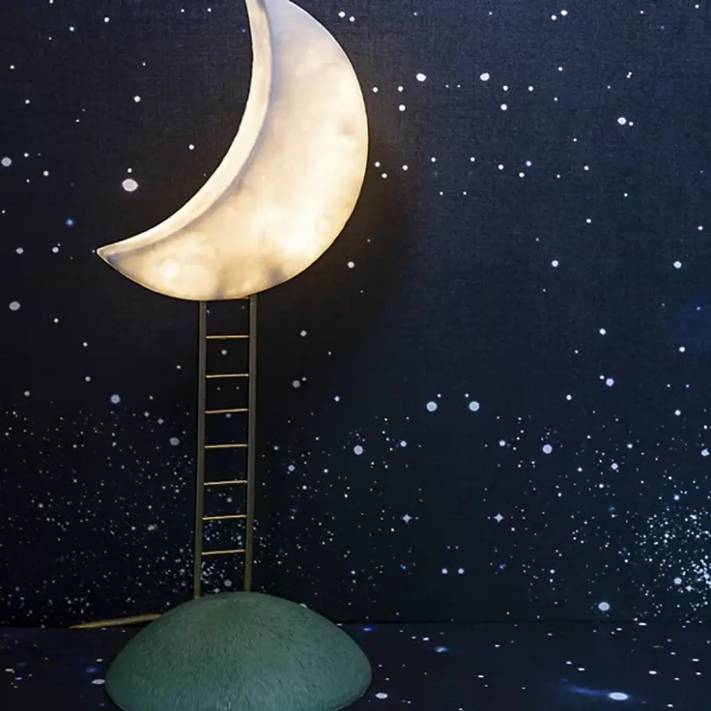 The My Secret Place LED Table Lamp from Seletti was designed by Marcantonio. This lamp transforms your environment into a realm of enchantment, featuring a ladder that gracefully unites with a crescent moon for poetic expression. Crafted from a combination of resin and metal, your table lamp is built for longevity. Enhance the ambiance to suit your mood with the lamp's dimmable feature, compatible with a separately sold ELV dimmer.
