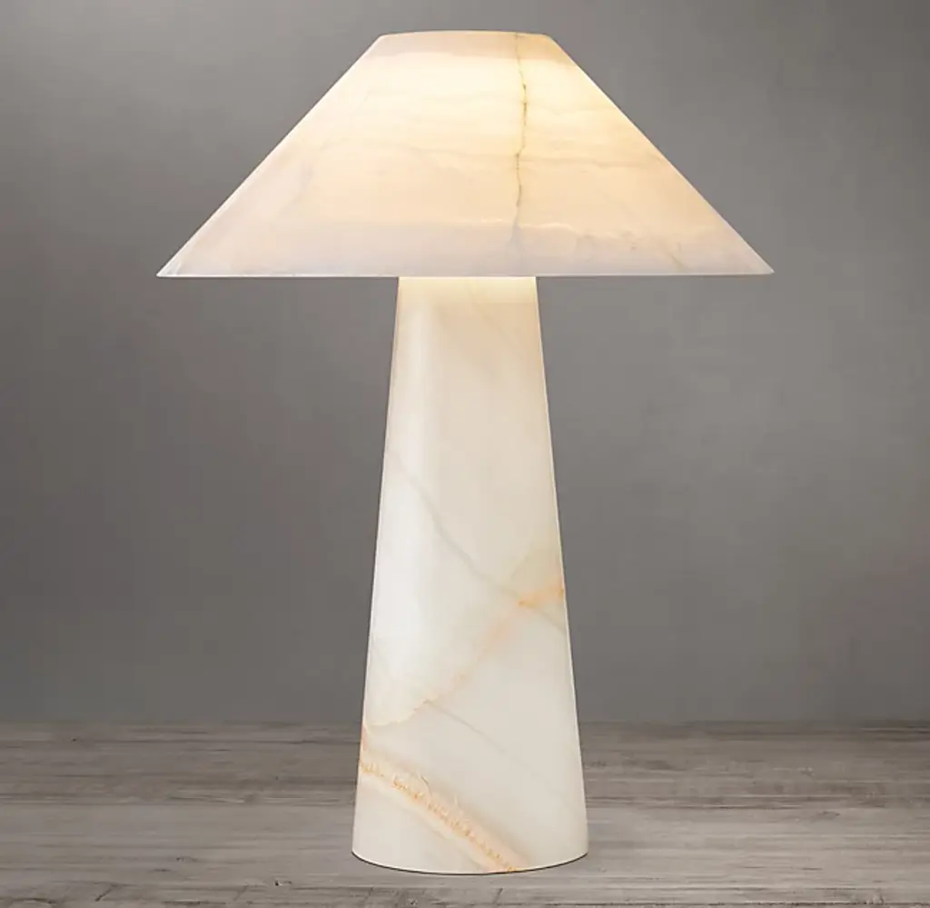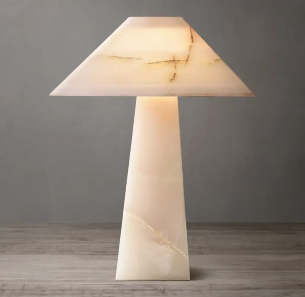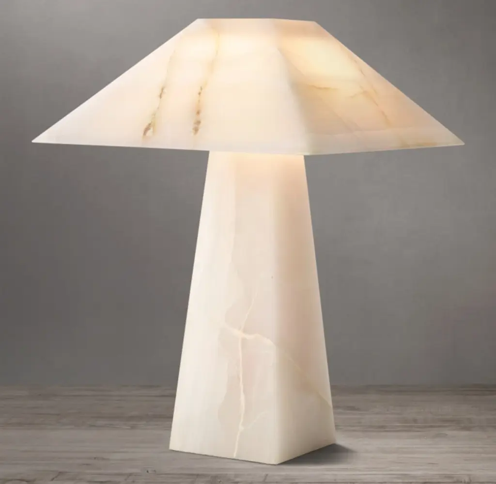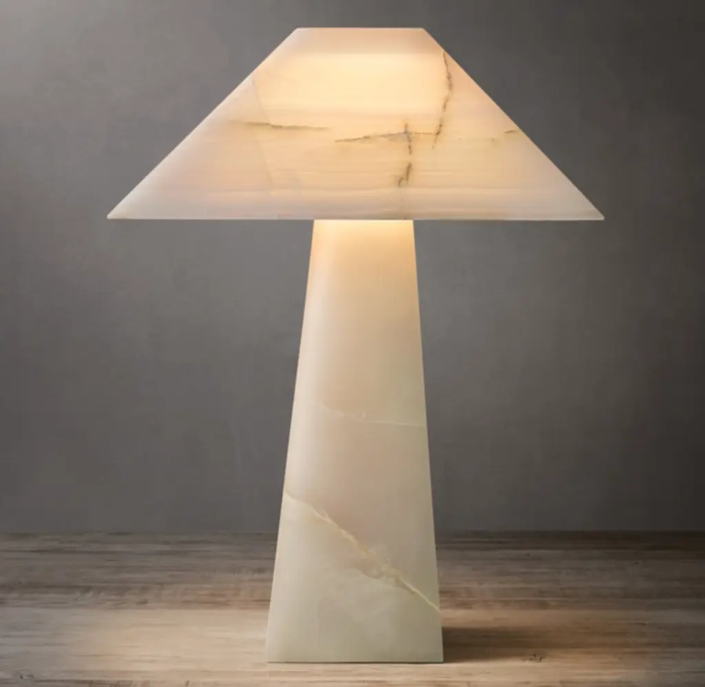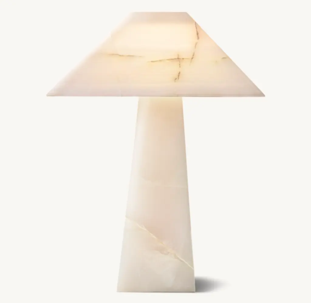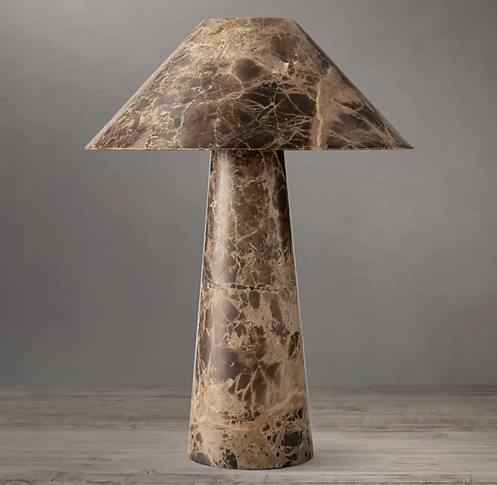 With its obelisk base and tapered shade, both handcrafted from lustrous solid stone, Mycena showcases the inherent beauty of its expressive natural materials. Rich veining and dynamic, organic tones on a minimalist silhouette bring timeless style to the modern, geometric form. ALSO AVAILABLE IN ROUNDSHOP THE ENTIRE COLLECTION