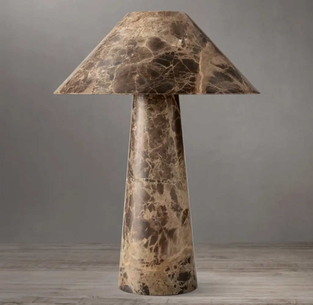 With its conical base and shade both handcrafted from lustrous solid stone, Mycena showcases the inherent beauty of its expressive natural materials. Rich veining and dynamic, organic tones on a minimalist silhouette bring timeless style to the modern, geometric form. ALSO AVAILABLE IN OBELISKSHOP THE ENTIRE COLLECTION