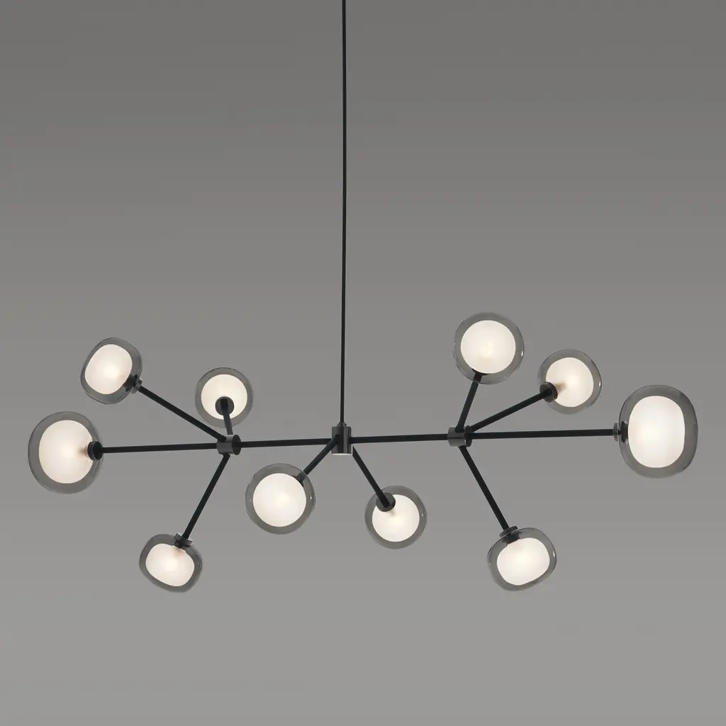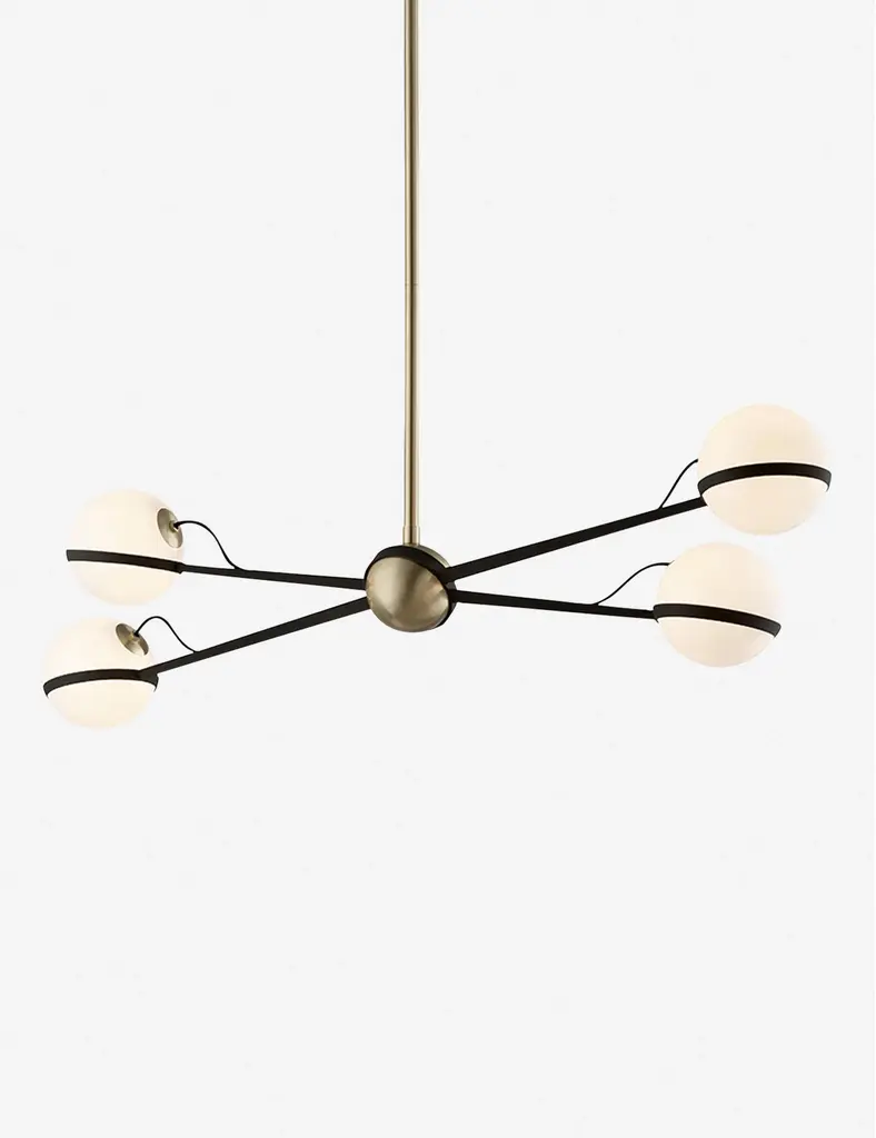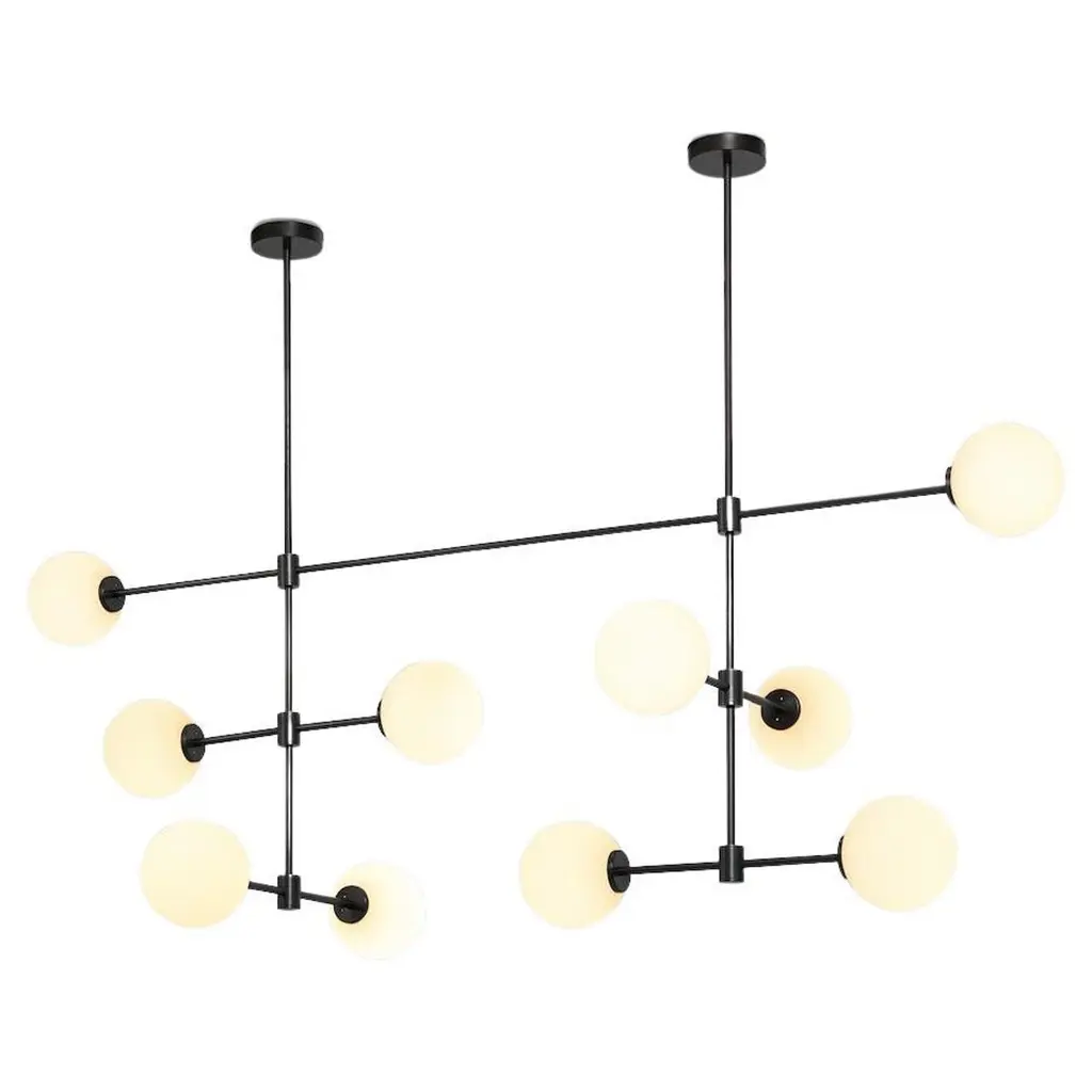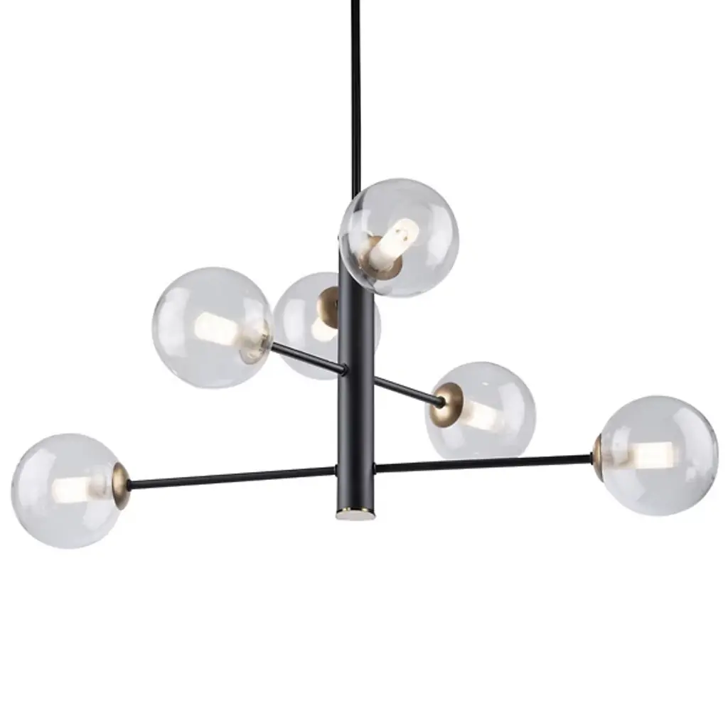 50s inspired collection of elegant and sophisticated lamps representing the detail to enrich any location. A double-sided spherical bright object in borosilicate glass makes these lamps available in different compositions and a structure made by metal coated with epoxy powder enriched with brushed brass or black chrome details. Different varieties are available for any situation: chandeliers (in five different models) or table lamp, bedside (smaller), floor or wall (available in three different models for single or composite personalized installation). Richness and sobriety all in one single element.