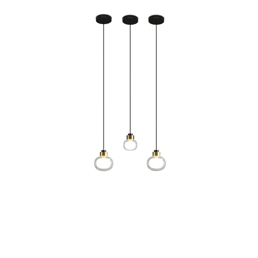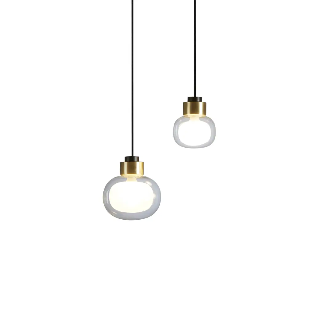 50s inspired collection of elegant and sophisticated lamps representing the detail to enrich any location. A double-sided spherical bright object in borosilicate glass makes these lamps available in different compositions and a structure made by metal coated with epoxy powder enriched with brushed brass or black chrome details. Different varieties are available for any situation: chandeliers (in five different models) or table lamp, bedside (smaller), floor or wall (available in three different models for single or composite personalized installation). Richness and sobriety all in one single element.