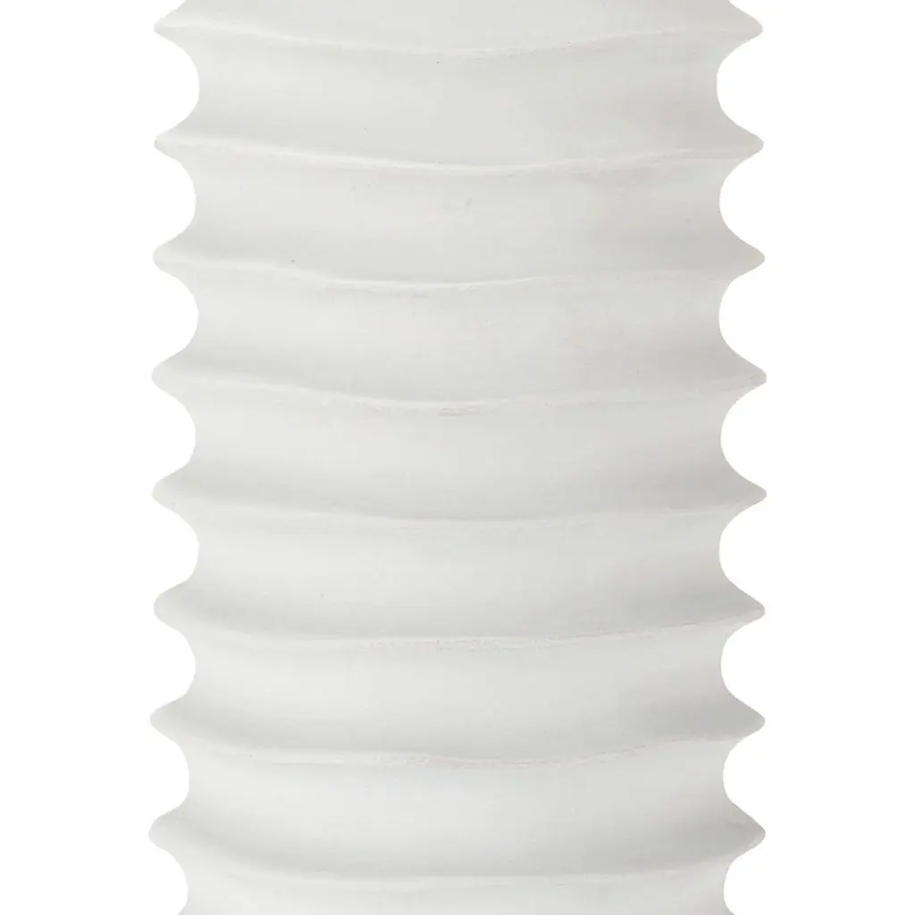 A tactile white finish on the Nabu metal column table lamp accentuates its accordion-like base. Its simple, yet artisan feel would make for a beautiful welcome in an entryway or in a pair as bedside lighting.
