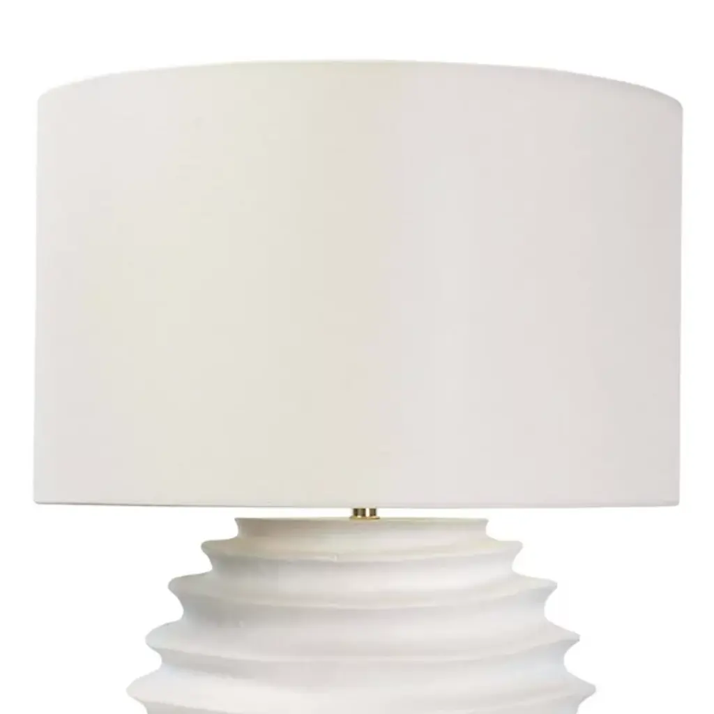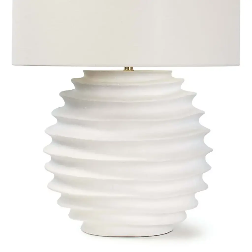 The Nabu Table Lamp by Regina Andrew brings an elegant dose of simplicity to spaces with its minimal, almost modern build. Topped with a clean, crisp, drum-shaped shade, this lamp is defined by a spherical, metal body that features a cool, accordion-like build. Finished with a tactile, uniform finish that gives it an artisan feel, the dynamic sense of movement this base evokes finds itself at home in a range of rooms as the shade above filters an even layer of illumination onto surroundings.