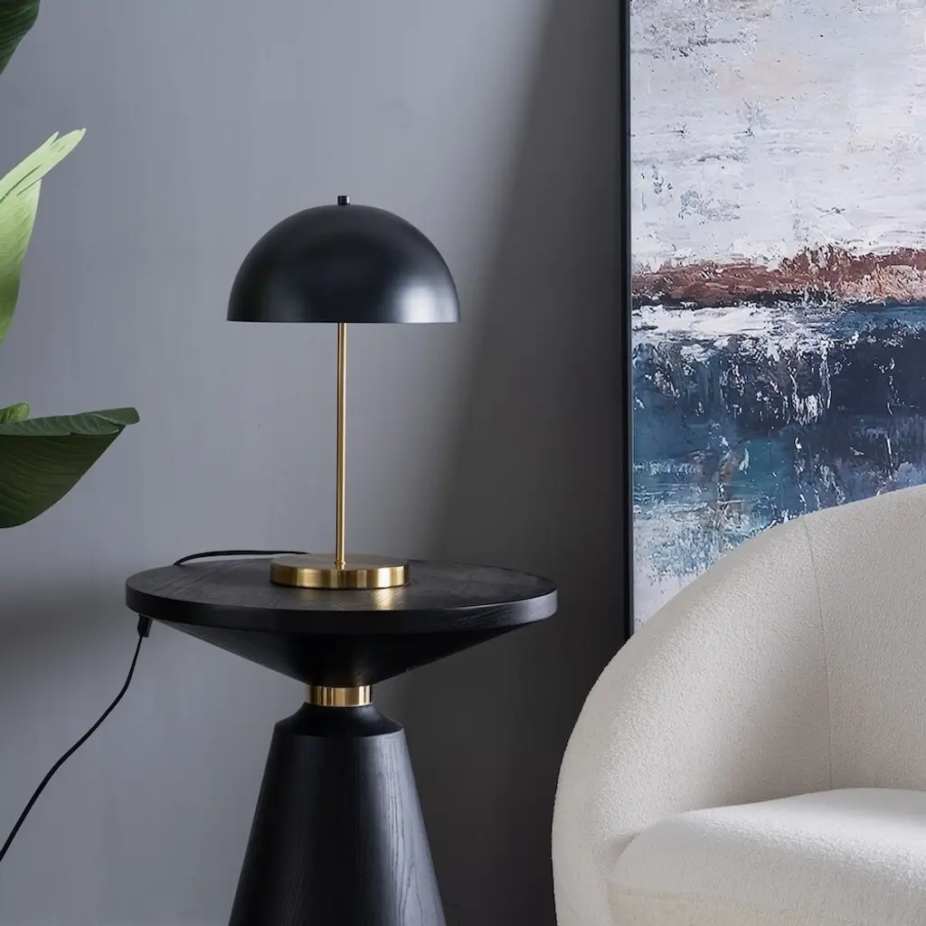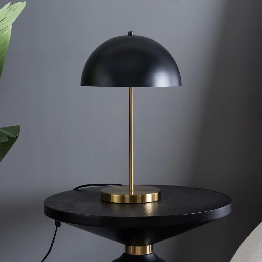 Nadia Black Dome Table Lamp With Gold Base - Gold