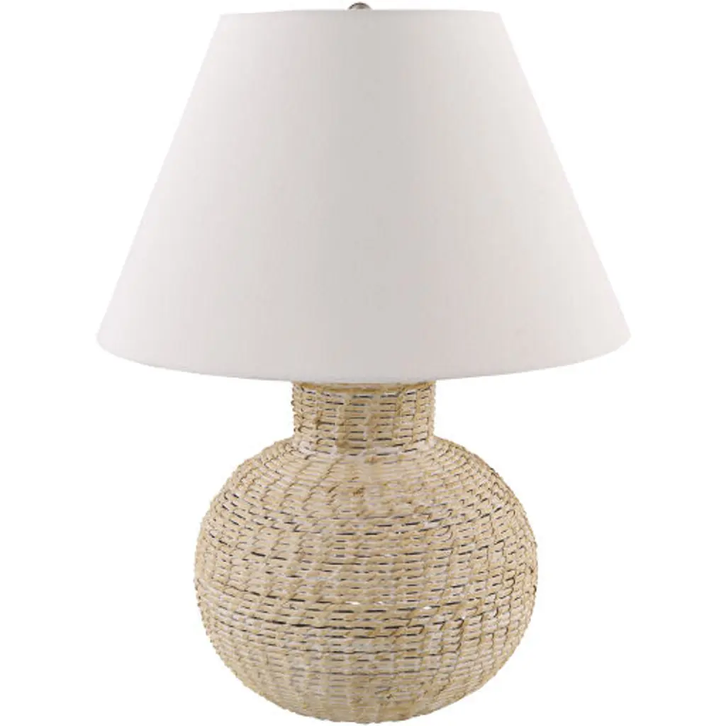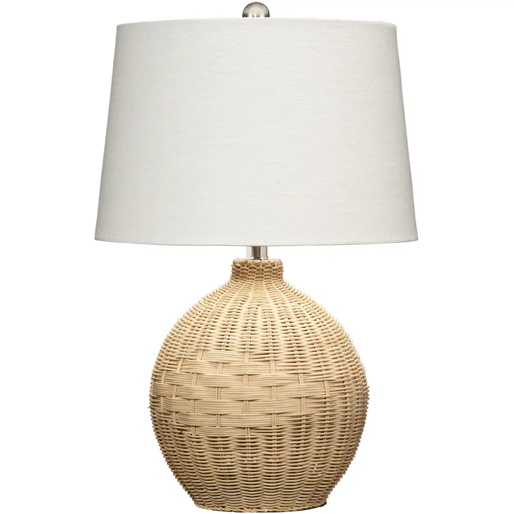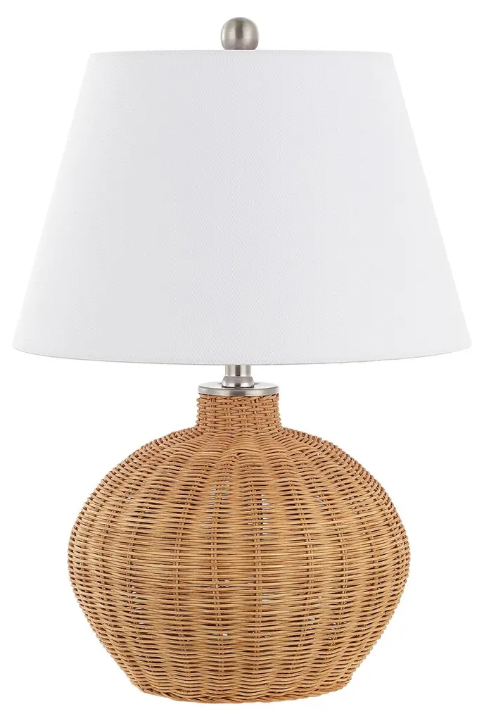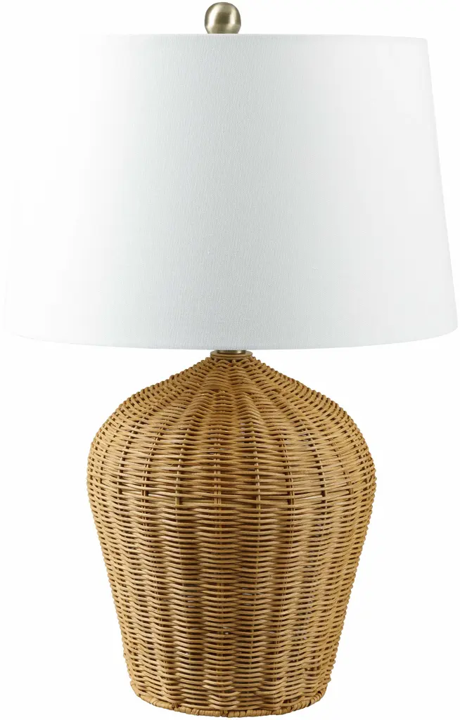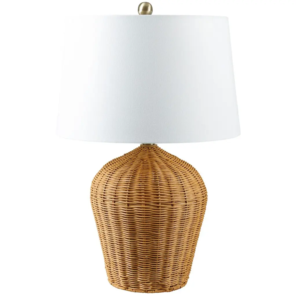 The Nagua Table Lamp from Surya features handwoven rattan craftsmanship that brings natural texture into your home. Its intricate weaving patterns create subtle shadows when illuminated, adding dimension beyond just the light it provides. The lamp’s practical empire shade with linen exterior and polyester interior offers generous light distribution through a convenient 3-way socket switch. Its steel finial completes the farmhouse-inspired design with a durable accent. This cottage-style table lamp brings the relaxed feel of handcrafted goods into everyday spaces.