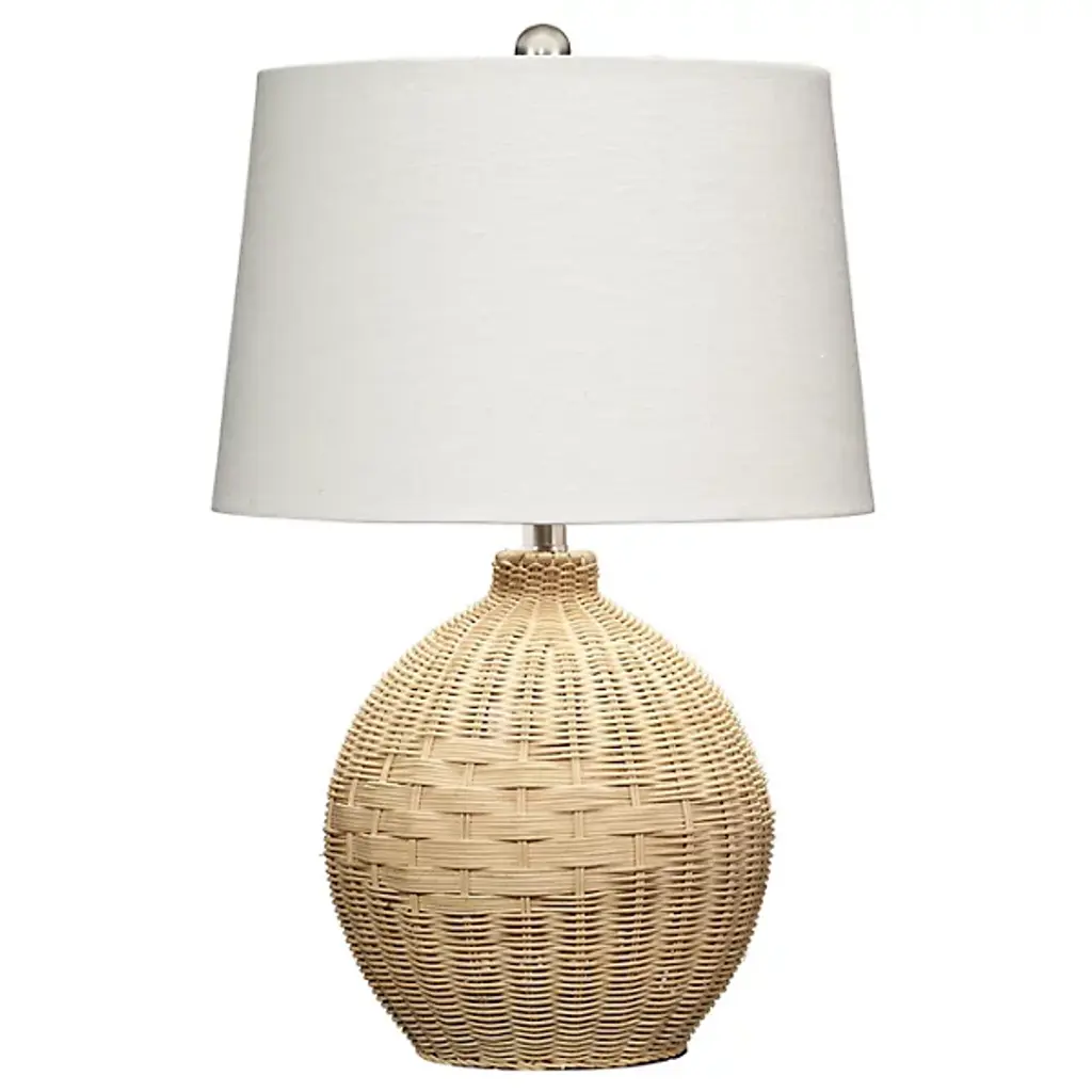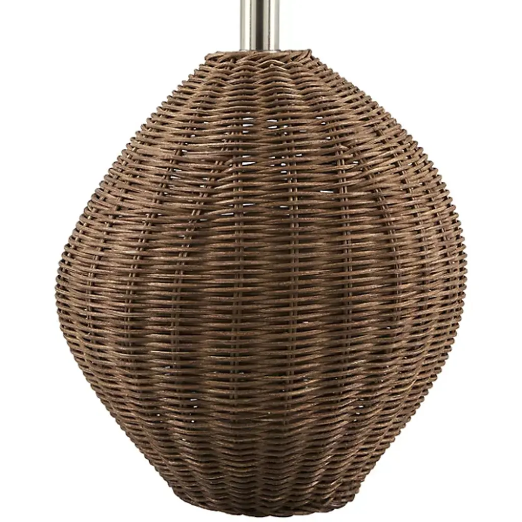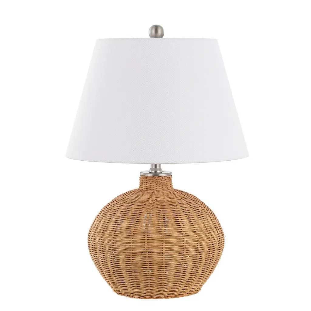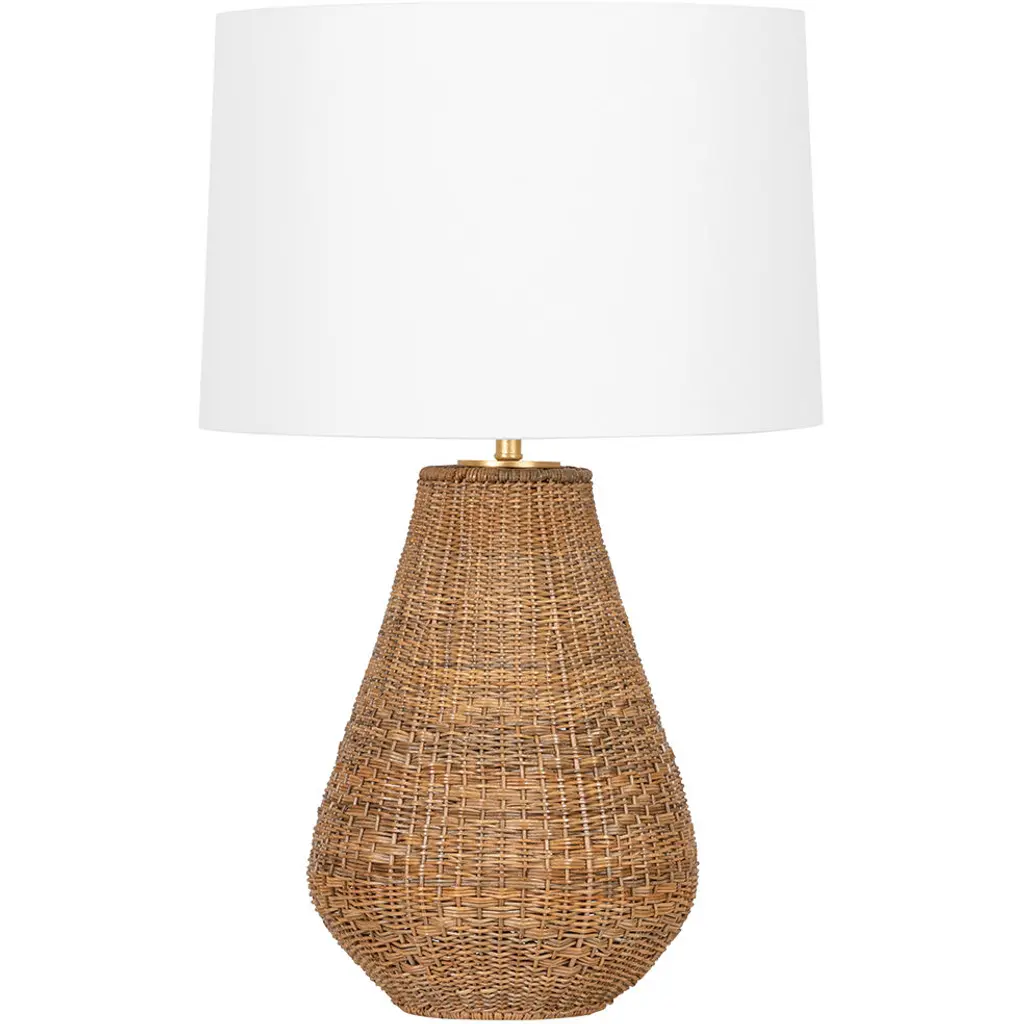 The Nagua Table Lamp from Surya features handwoven rattan craftsmanship that brings natural texture into your home. Its intricate weaving patterns create subtle shadows when illuminated, adding dimension beyond just the light it provides. The lamp’s practical empire shade with linen exterior and polyester interior offers generous light distribution through a convenient 3-way socket switch. Its steel finial completes the farmhouse-inspired design with a durable accent. This cottage-style table lamp brings the relaxed feel of handcrafted goods into everyday spaces.