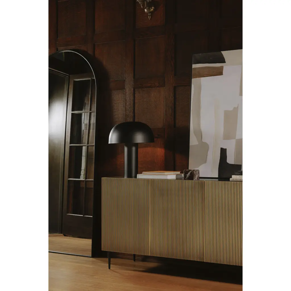 Influenced by Mid-Century mushroom lamps, the Nanu table light boasts simple yet striking lines and a symmetrical profile in iron. The rounded shade sits atop a slim shaft adding timeless charm to any room while the dark tone adds a touch of drama and sophistication.