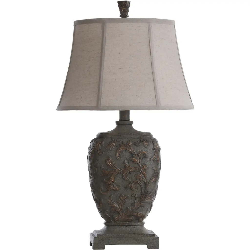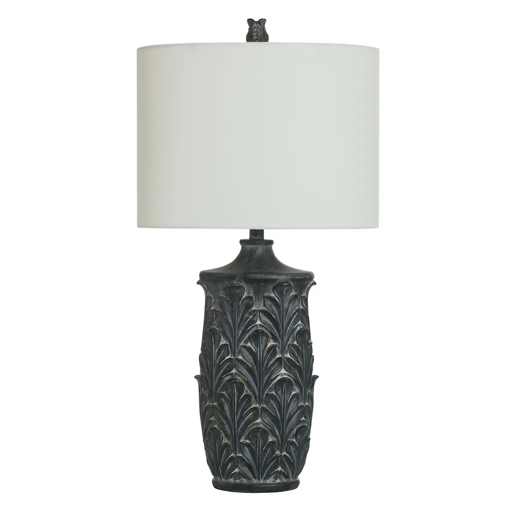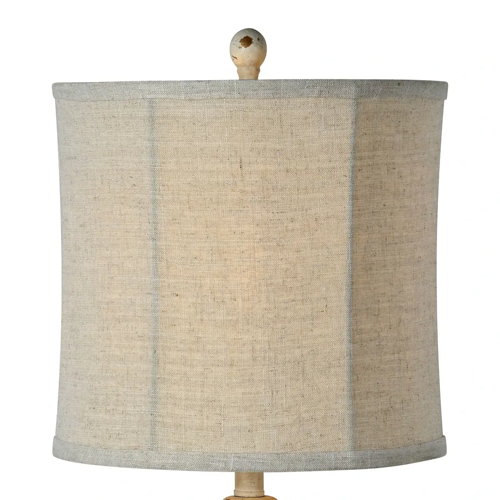 Is it an antique or is it new? If you don't tell—no one will know! The Naomi table lamp is designed to mimic an antique finial and features a distressed white finish with gold accents. This lovely 27 inch tall lamp is made of resin and has a softback oatmeal linen drum shade. The Naomi comes in a set of 2 and uses a 100 watt standard bulb (not included).