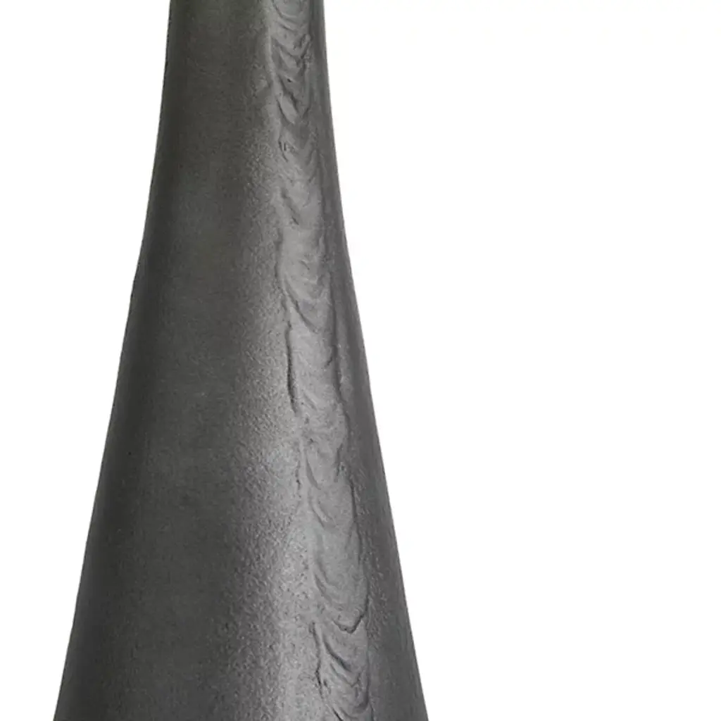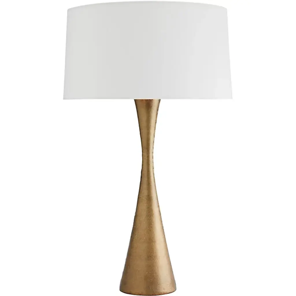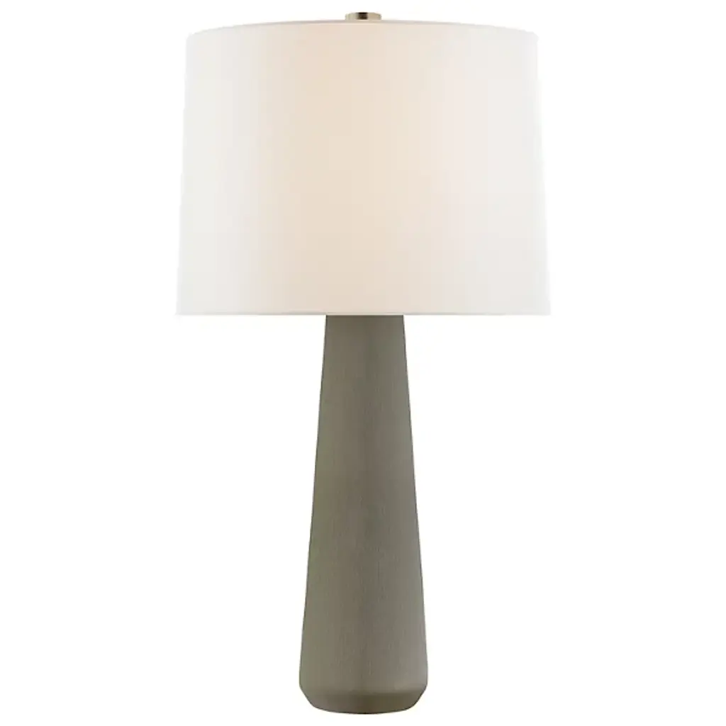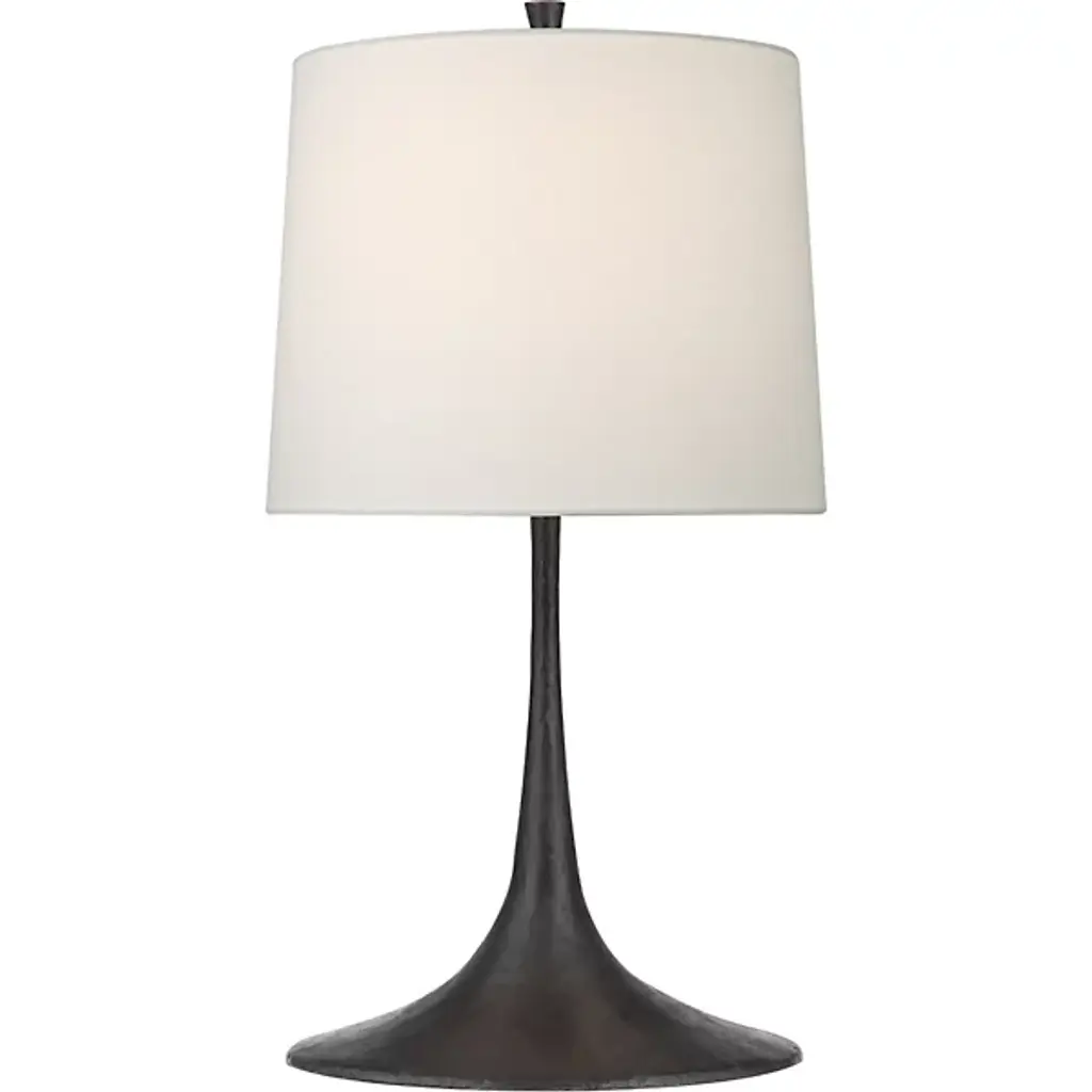 Make a modern minimalist enhancement to your interiors with the smooth and striking Narsi Table Lamp from Arteriors. Based on a body fashioned from cast aluminum, its extended hourglass narrows extremely toward the piece’s midpoint before flaring out to place its lamping beneath a rounded drum shade fashioned from cotton. This translucent layer reduces horizontal glare to an even ambiance, while a bronze-textured finial offers a final, contrasting note to the fixture.