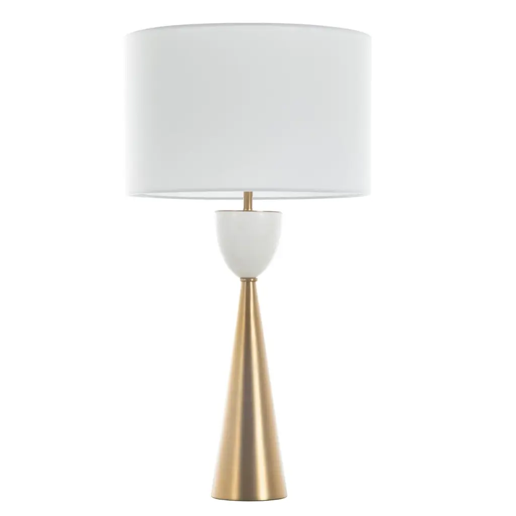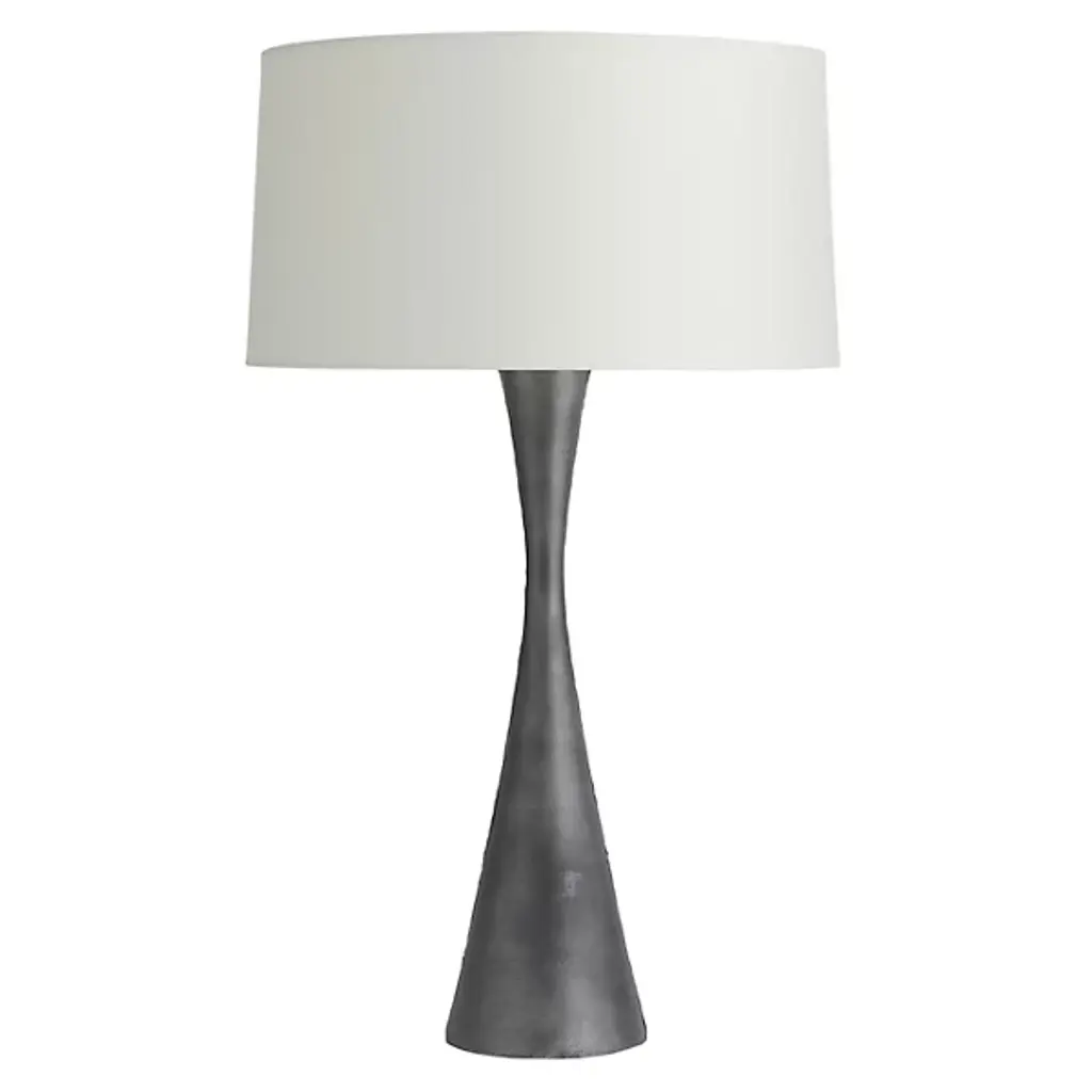 Make a modern minimalist enhancement to your interiors with the smooth and striking Narsi Table Lamp from Arteriors. Based on a body fashioned from cast aluminum, its extended hourglass narrows extremely toward the piece’s midpoint before flaring out to place its lamping beneath a rounded drum shade fashioned from cotton. This translucent layer reduces horizontal glare to an even ambiance, while a bronze-textured finial offers a final, contrasting note to the fixture.