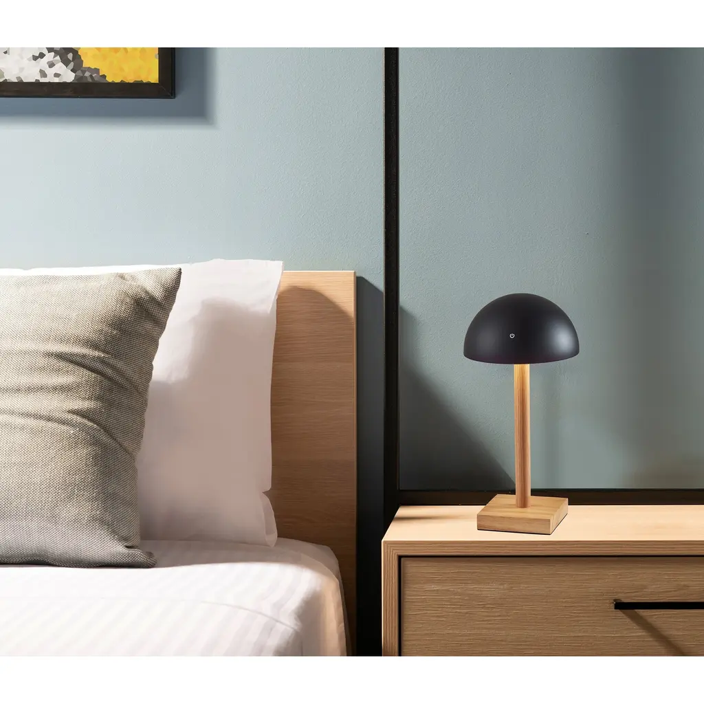 Nash Led Cordless Table Lamp- Black - Black & Natural Wood