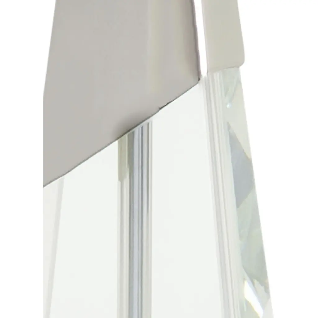 A carved crystal body is accentuated with an asymmetrical Polished Nickel cap detail on this table lamp. A White Linen oval shade tops the lamp and a rectangular crystal base acts as the foundation. If your living room is in need of a shot of glamour, look no further. Also available in an Antique Brass version.