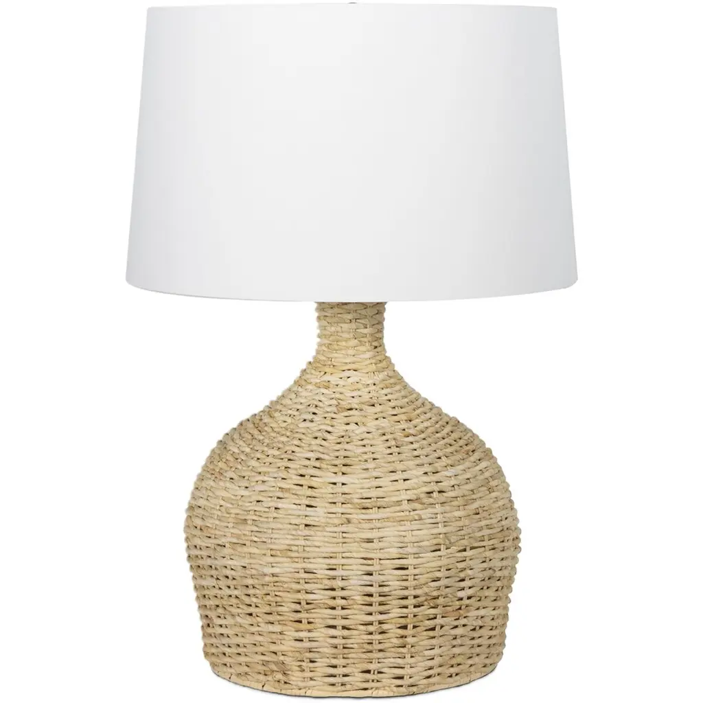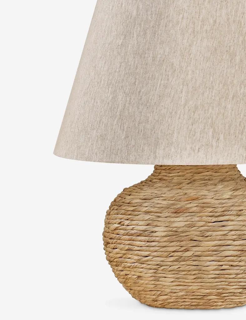 Inspired by traditional basket-weaving, the Navey table lamp features a coiled base of natural fiber in a heathered tone. A wide linen shade balances the silhouette, casting a soft, ambient light. We love this lamp for layering organic texture into thoughtfully collected spaces.