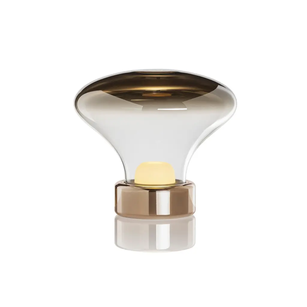 An otherworldly and organic form for your table, the Nebula Table Lamp from Lasvit is an innovative design by Claesson Koivisto Rune. Expertly handcrafted in the Czech Republic, its unique system shines light from a central lens up onto a reflective, metalized glass dome. This creates a soft, indirect gradient glow, while the mirror-like dome dynamically reflects its surroundings. A fusion of minimalist design and innovative glassmaking, it brings a serene, celestial beauty to any surface. Highlights: