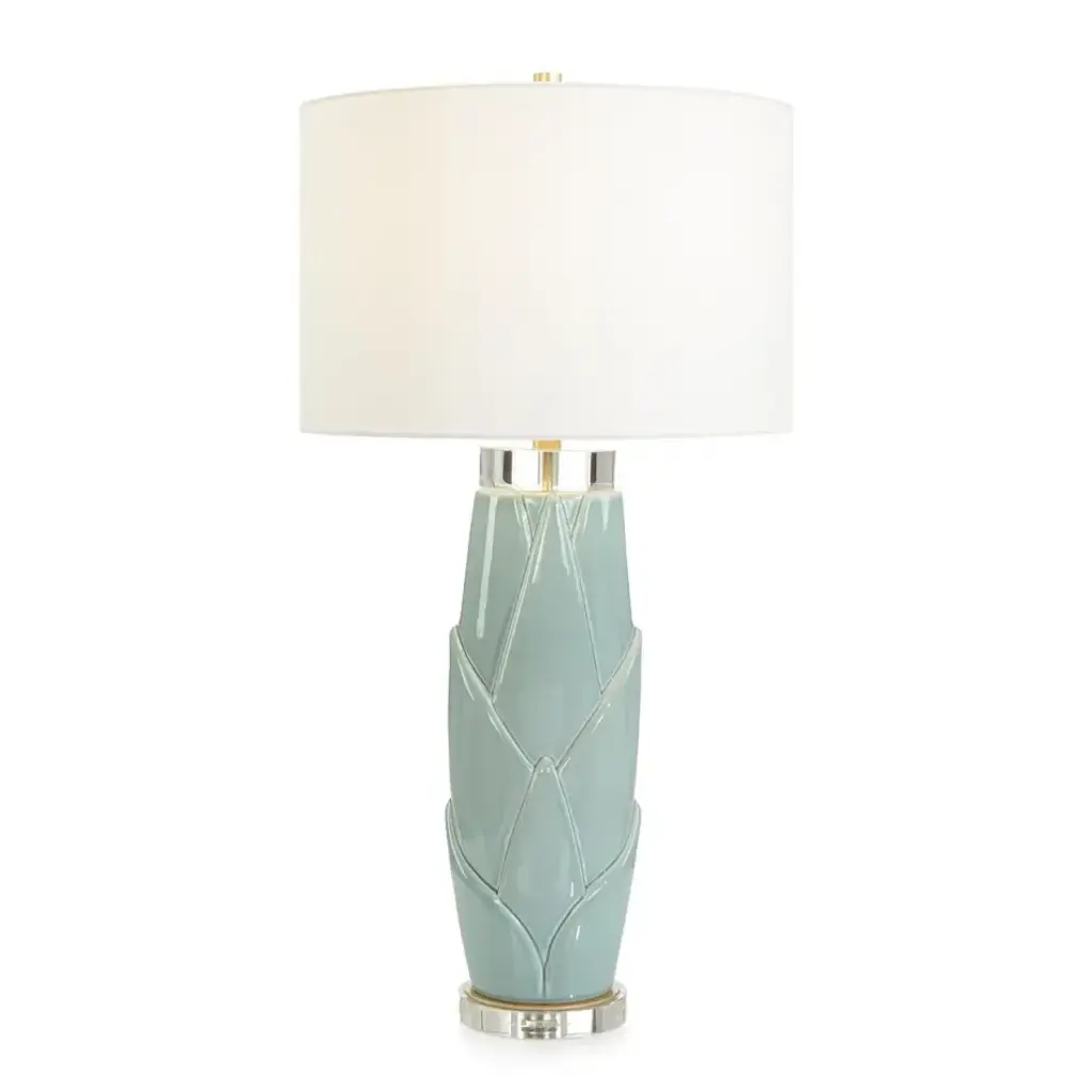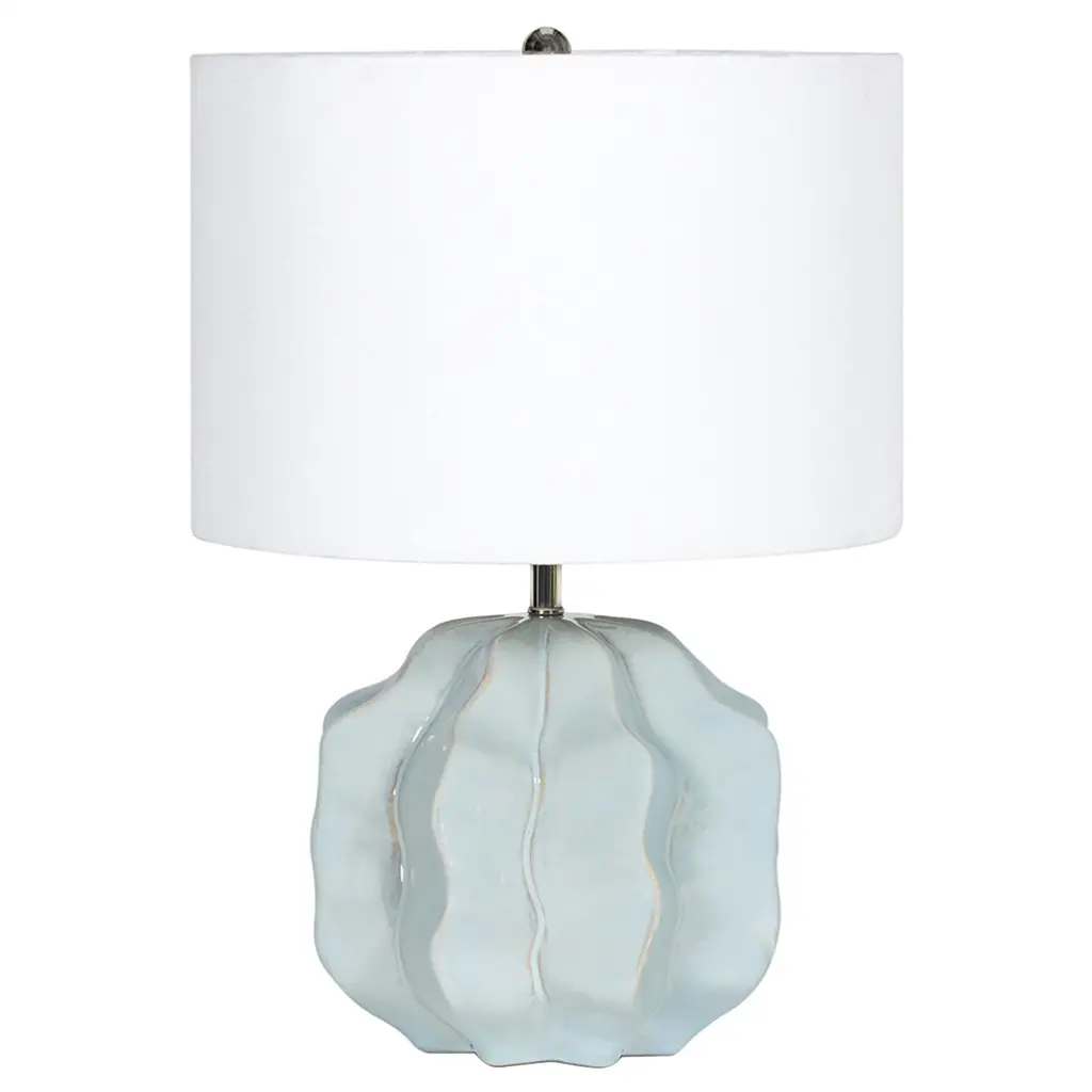 Le Ciel Blue cone with gold leafed anemone and lamp holder with a Le Ciel blue painted card cylinder shade. The gold leafed anemone lamp holder brings the perfect warmth to the cool design and the 15" diameter shade. Matching todays mix of warm and cool design the Neo Blue table lamp will be an addition to your design plans.Number of Bulbs: 1Bulb Type: MedBulbs Included: NoWattage: 1x60w MEDShade Included: YesShade Finish: Le Ciel Blue painted cardShade Shape: CylinderVoltage: 110v