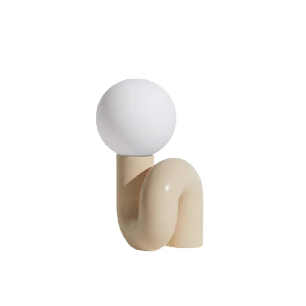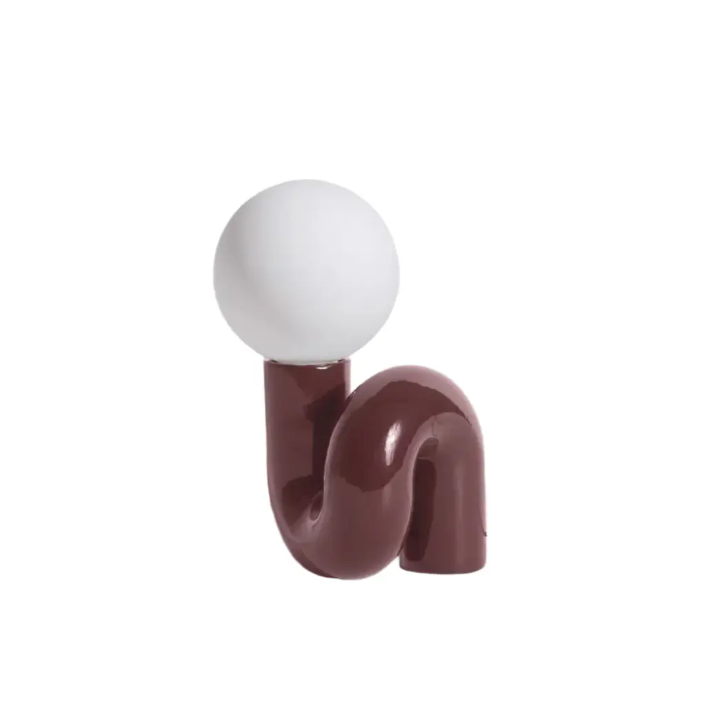 Meant to echo a playful childhood shape, the Neotenic Table Lamp from Petite Friture is both a functional light source and an eye-catching sculptural object. Its generous, squiggle base is topped with a handblown glass orb, adding to the playful eclecticism of the lamp. Bring a pop-art inspired design to your bedside table, entryway table, or open shelving display. Highlights
