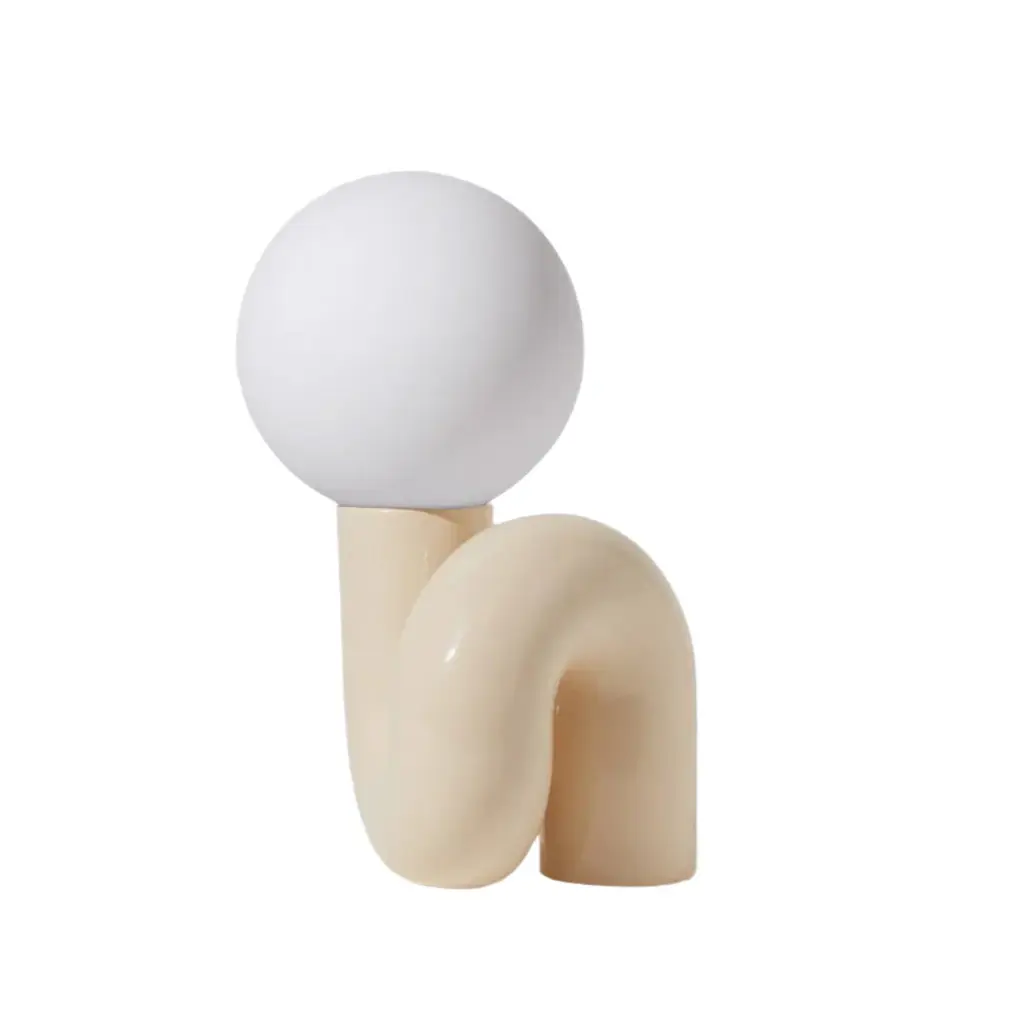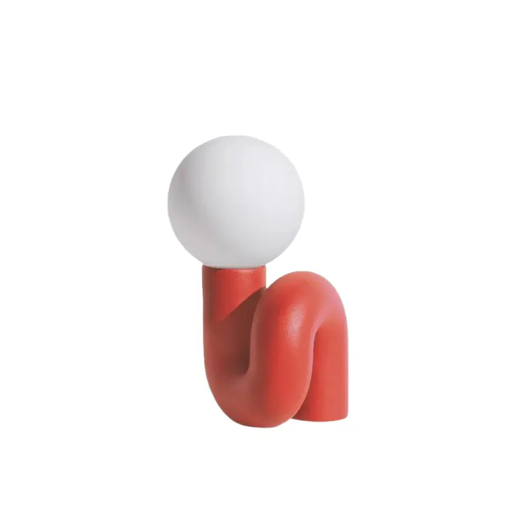 Meant to echo a playful childhood shape, the Neotenic Table Lamp from Petite Friture is both a functional light source and an eye-catching sculptural object. Its generous, squiggle base is topped with a handblown glass orb, adding to the playful eclecticism of the lamp. Bring a pop-art inspired design to your bedside table, entryway table, or open shelving display. Highlights