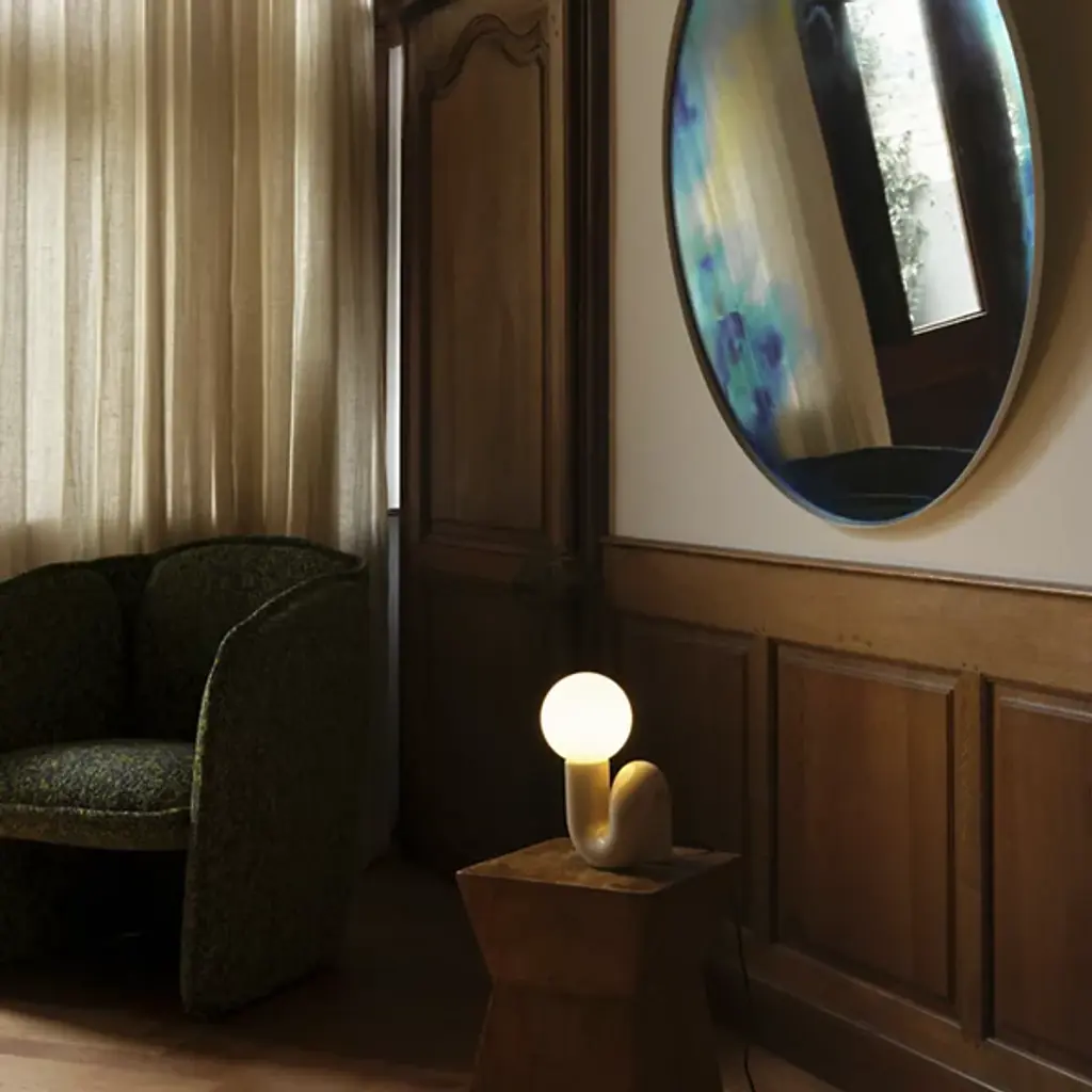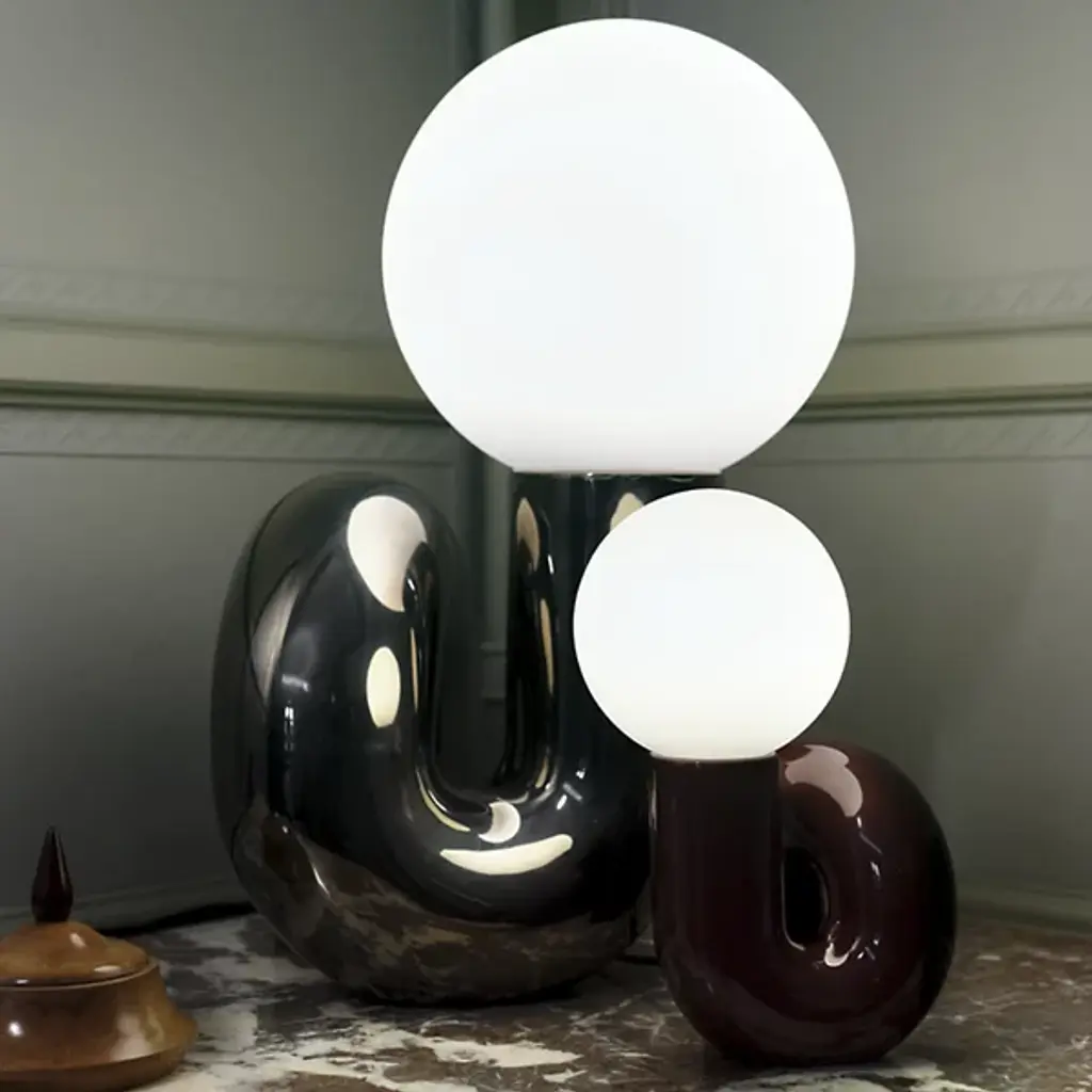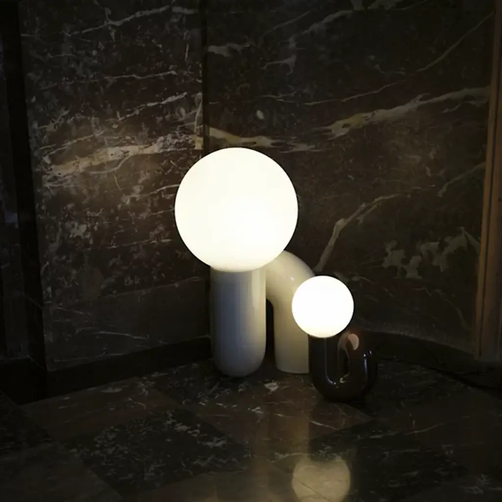 The Neotenic Table Lamp from Petite Friture is designed by Jumbo. This table lamp is not just a source of light. It is an artistic expression that adds a touch of playfulness to your space. Crafted with precision from high-quality ceramics, Neotenic features an expertly contoured body. The lamp features a globe-shaped shade made from exquisite glass, adding a layer of elegance to the design. Illuminate your surroundings with the integrated LED. Your table lamp has an on/off inline switch for convenient control.