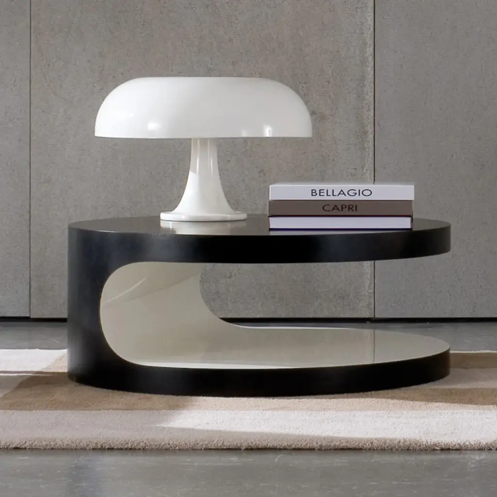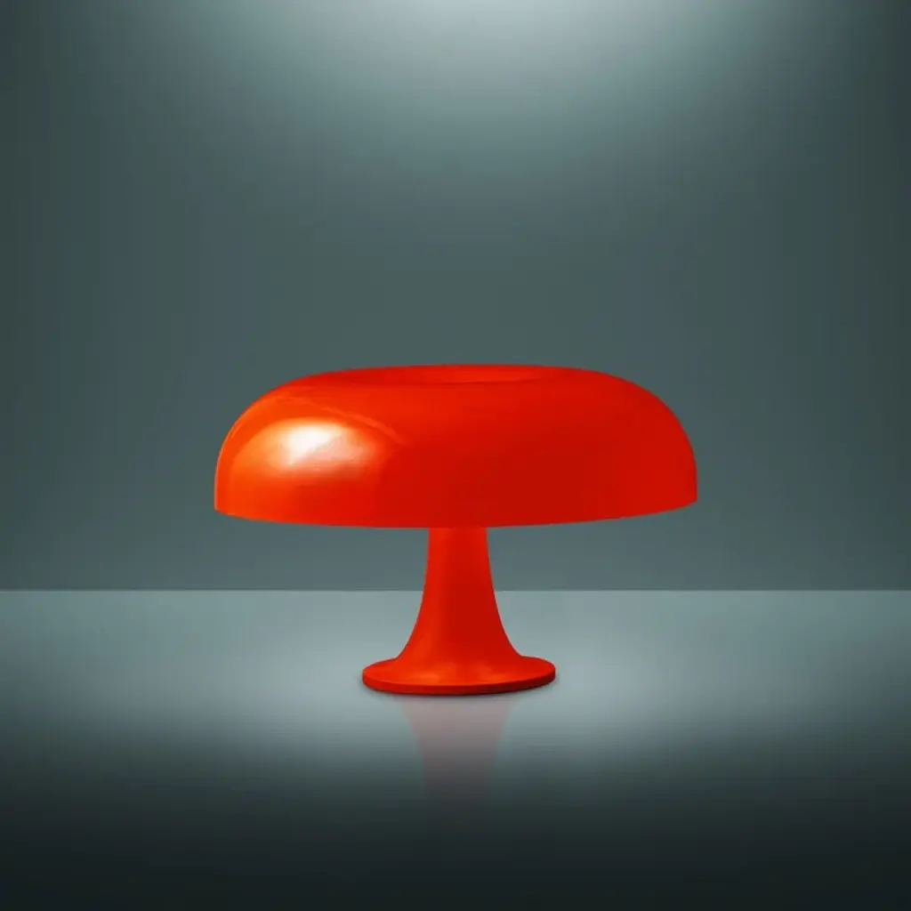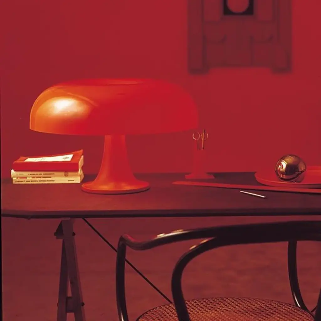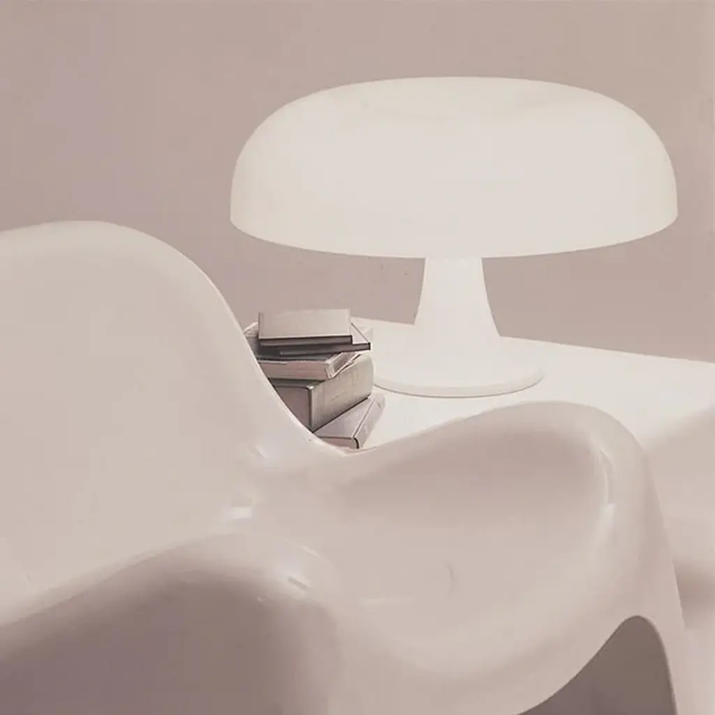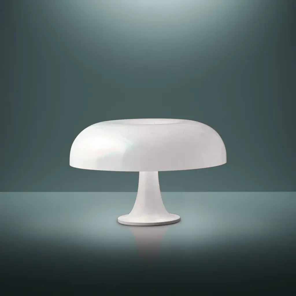 An indelible image of the 1960's, the Nesso Table Lamp beguiles today as it did in 1965, when Giancarlo Mattioli won Milan's Studio Artemide Domus competition. Nesso's mushroom-shaped, beautifully contoured form with a dimpled lampshade purported to be inspired by a woman’s navel - is as dramatic as it is simple, its single-color molded resin profile imbued with the kind of visual elegance destined for museum permanent collections. Features