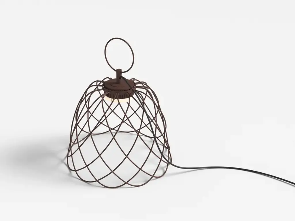 NET is an iron lamp with a strong sculptural inclination.Light Source:-E27 (bulb not included) {A++ -› E} max 70WDimming:-ON/OFFCable colour:-Black rayon (150 cm)*For versions with chrome and gold finish domes, the base is available only in matt black (RAL 9005).NET is a lamp in sheet steel with a strong sculptural inclination. The diffuser is made from a laser-cut flat steel sheet based on concentric, alternate lines. These transform it into a thick hand-modulable lattice that allows the diffuser to achieve infinite stylish solutions. It can assume simple, pure forms to adapt to discrete and minimal or complex geometric and sculptural environments giving character to and enriching homes or public spaces. When it is switched on it projects a pleasing decorative effect onto the walls. There are also pendant, floor and table versions.