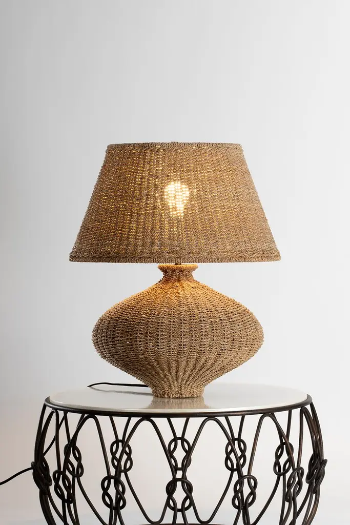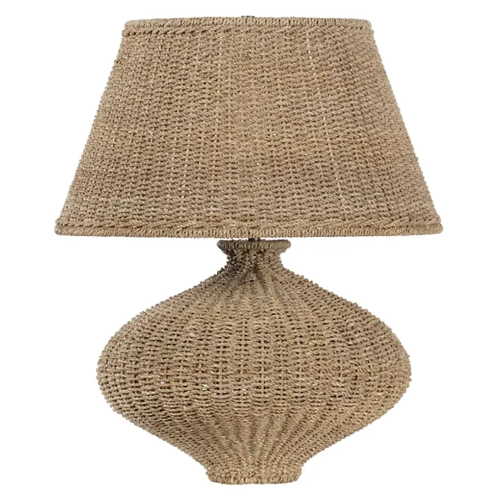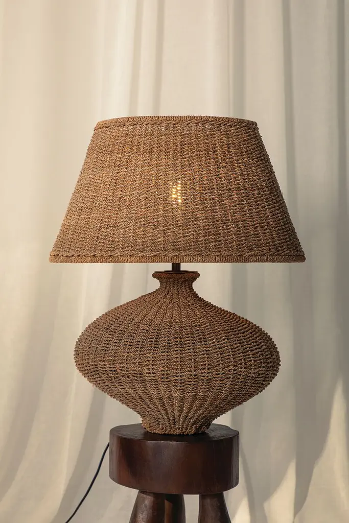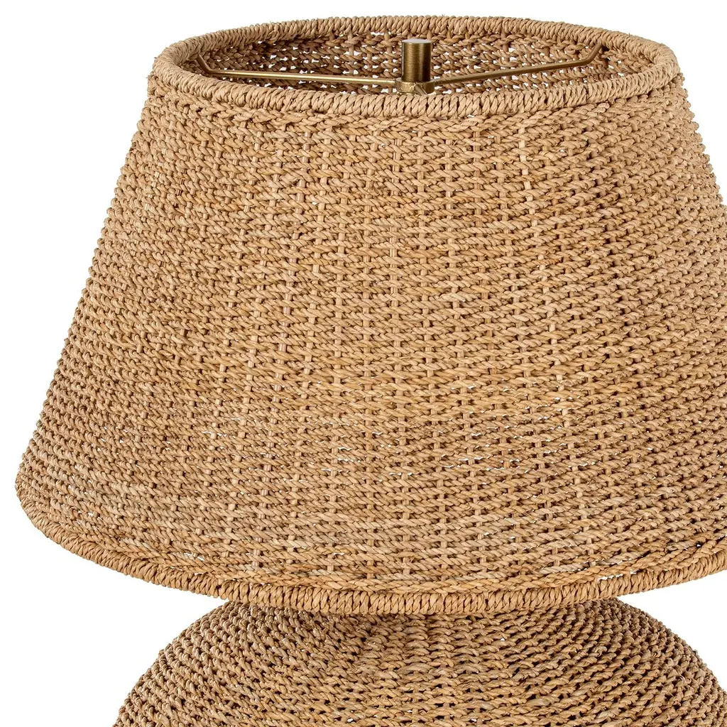 Celebrating the beauty of imperfection, the sculptural Nette lamp features an asymmetrical body and tapered shade in all-over natural woven Abaca. The shapely silhouette gives Nette a rustic presence, while the finish adds to the warm aura surrounding the piece. Place Nette on a console, desk, or end table for an instant dose of artistry. Part of our Loft and Thought collection. *Due to the one-of-a-kind nature of the medium, exact colors and patterns may vary slightly from the image shown.