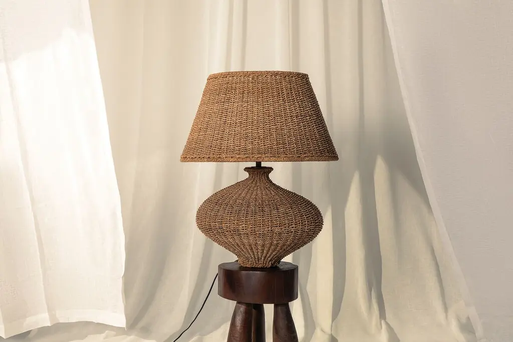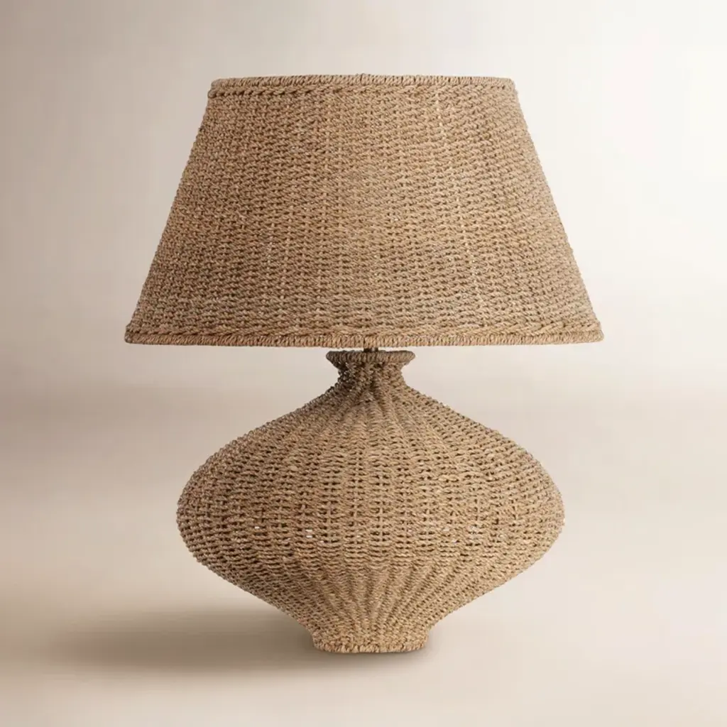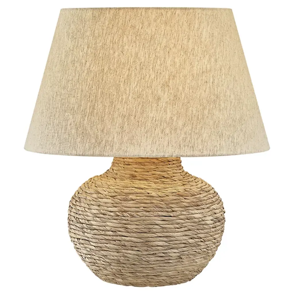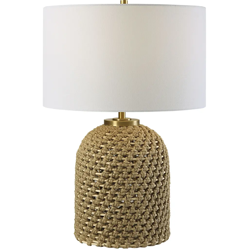 Celebrating the beauty of imperfection, the sculptural Nette lamp features an asymmetrical body and tapered shade in all-over natural woven Abaca. The shapely silhouette gives Nette a rustic presence, while the finish adds to the warm aura surrounding the piece. Place Nette on a console, desk, or end table for an instant dose of artistry. Part of our Loft and Thought collection. *Due to the one-of-a-kind nature of the medium, exact colors and patterns may vary slightly from the image shown.