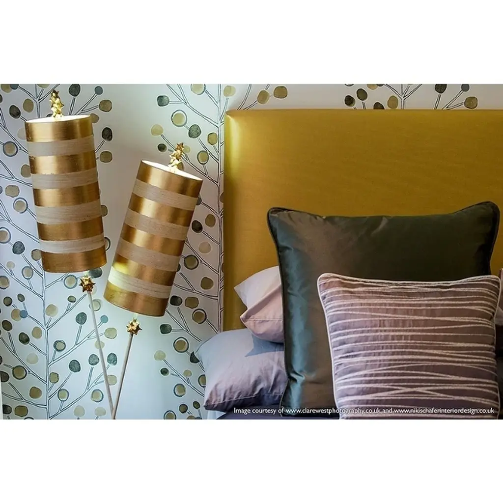 Nettle Luxe Lucas Mckearn Double 2 Striped Gold Table Buffet Lamp - Mix Of Gold And Silver