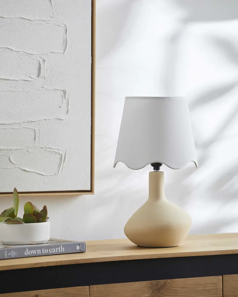 Collection: Neuenhagen Colors: Cream, White, Translucent Material: Body: Ceramic / Shade (Outside): Rattan / Shade (Inside): Metal Styles: Southwestern Made In: China Lighting Type: Accent Table Lighting Shade Material: Rattan, Metal Shade Color: White Cord Length: 6' Switch Type: On/Off Number of Bulbs: 1 Socket Type: E-26 Bulb Wattage: 60W