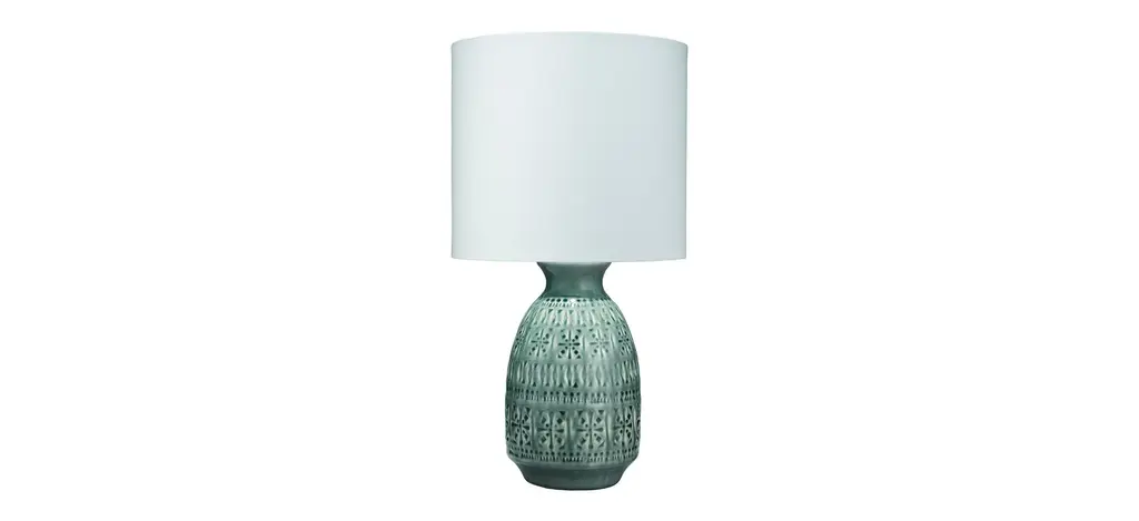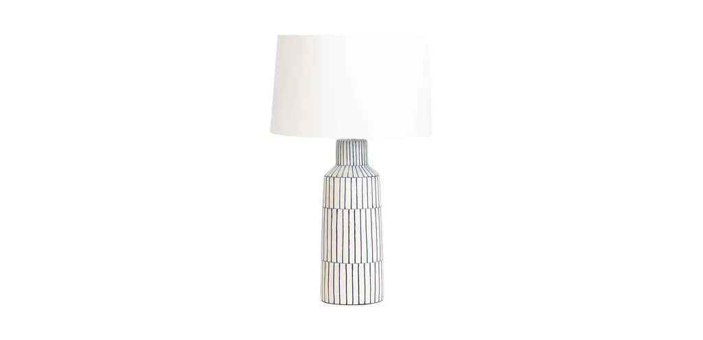 We have updated a traditional Indian block pattern in a beautiful Cobalt Blue and White to create a modern feel perfect for today's homes. This lamp is paired with a great 100% linen shade.