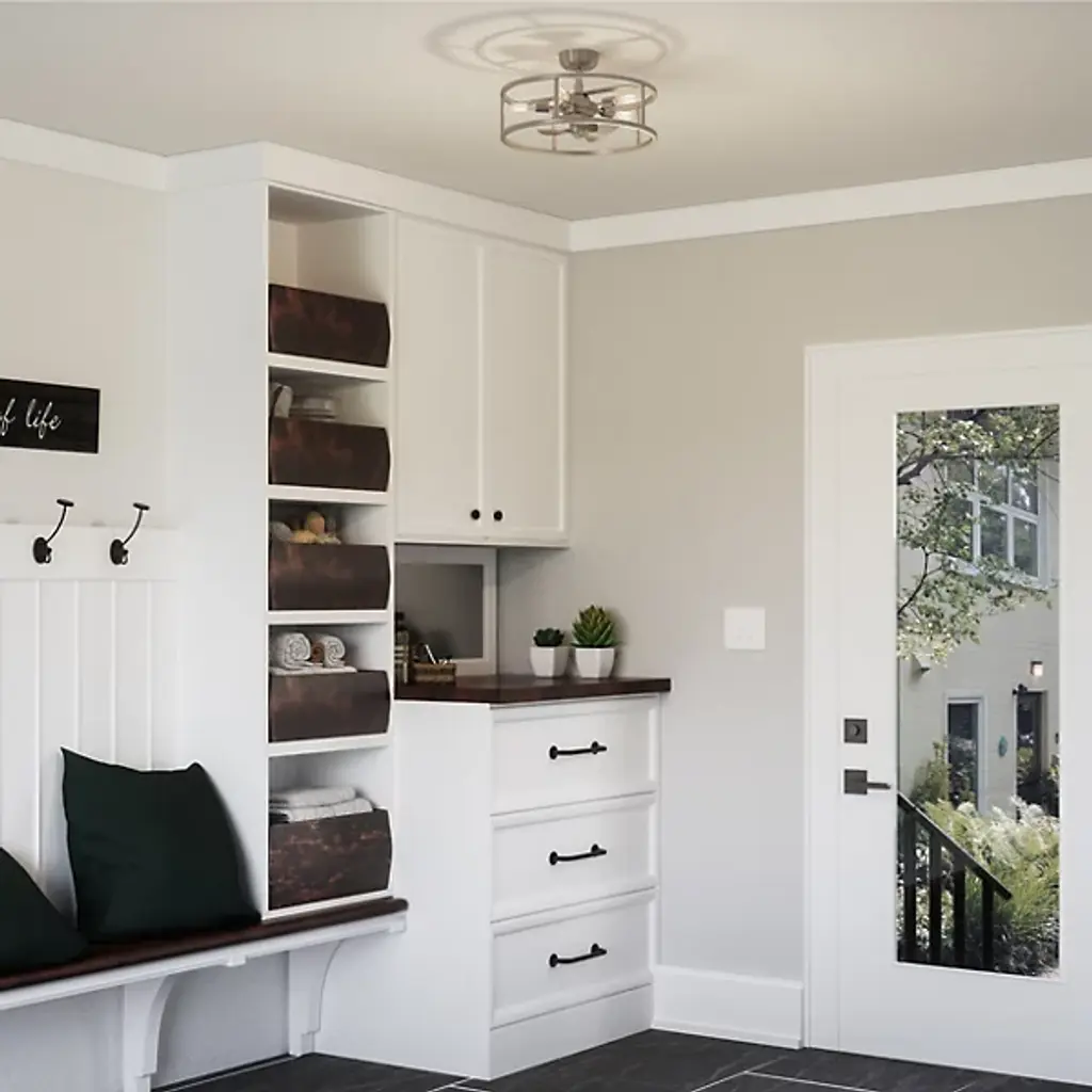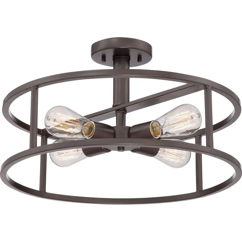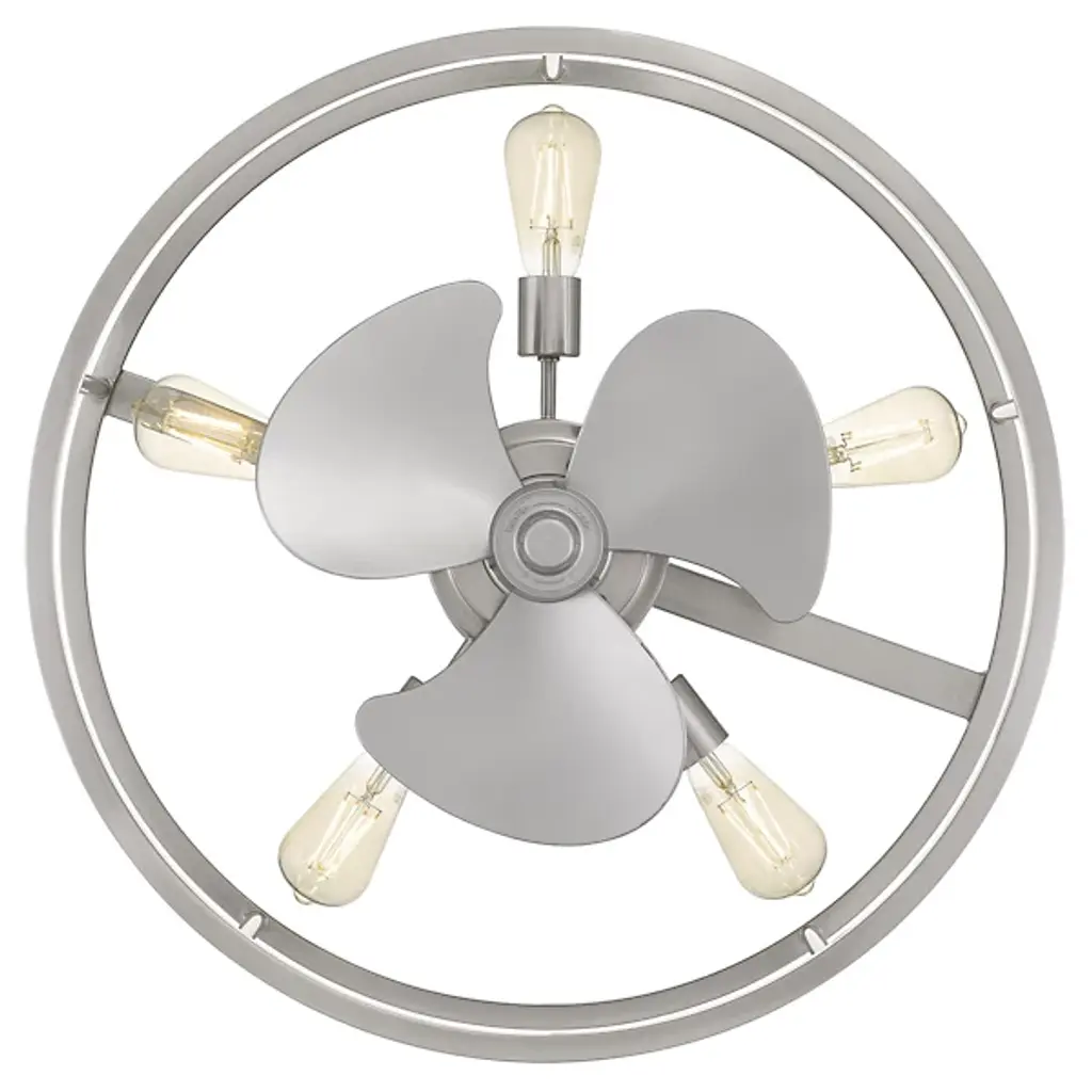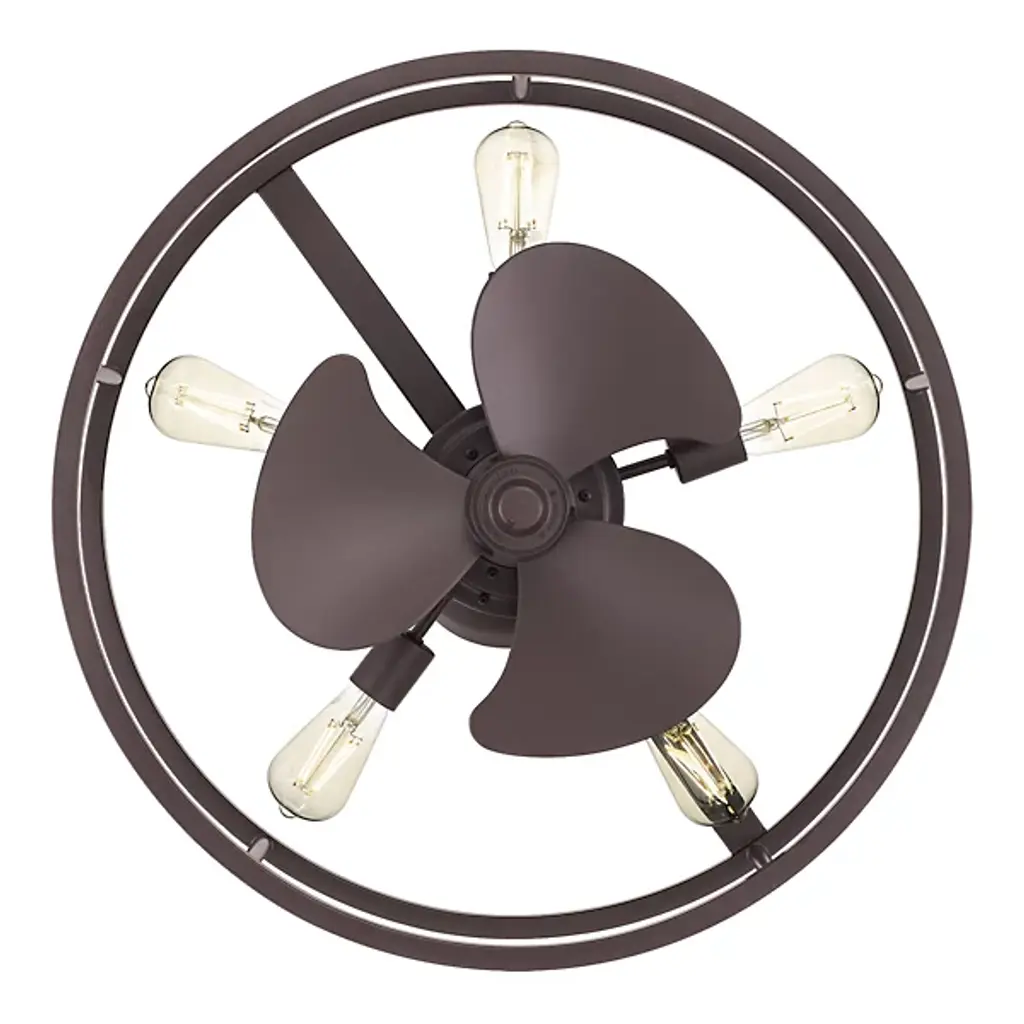 A forward-thinking piece inspired by antique fixtures. The New Harbor Fandelier from Quoizel combines the elegant glow of chandeliers, the breeze of fans, and the tight form of semi-flush mounts in one versatile design. Low ceiling spaces can appreciate this piece’s refined construction. It brings an open feel in its see-through short drum frame. Slotting into radiating lamp holders, vintage-style incandescent bulbs produce a warm, spacious glow highlighted by the fine texture of the filaments. Controlled with an included remote, the small but mighty fan blade produces comfortable air circulation over three speeds and with a reversible function.