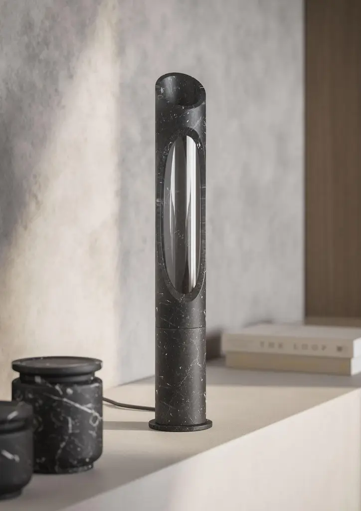 New Modern Lamp In Black Marquinia Marble, Designed By Jacopo Simonetti