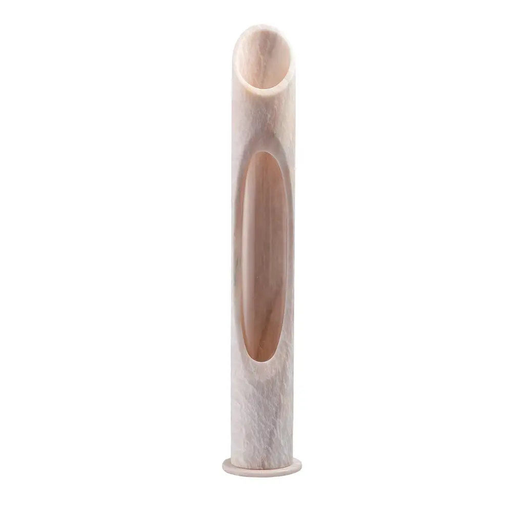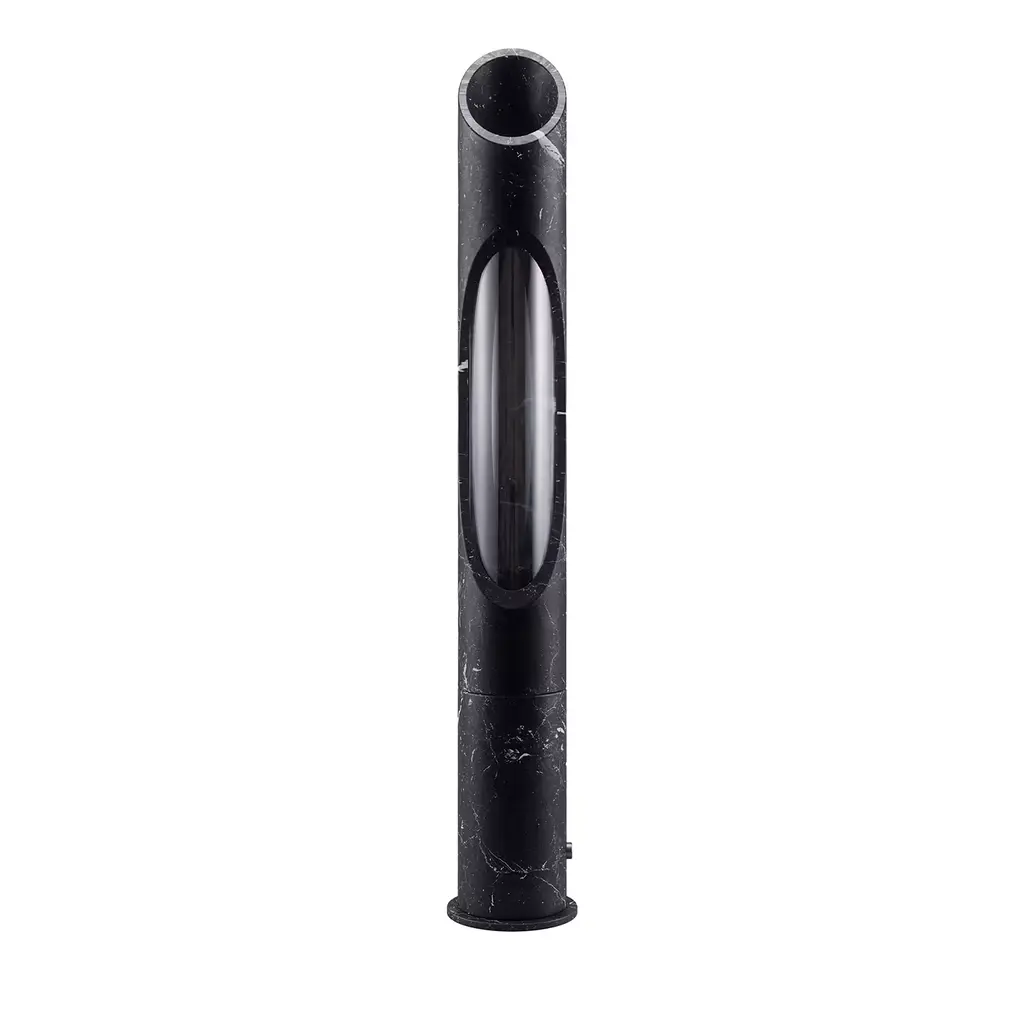 Lamp S in Black Marquinia Egeo marble, designed by Jacopo Simonetti.Available also in Pink Egeo, White Arabescato, Onyx White marble and in the L version. Armonia Collection: Inspired by the captivating image that two contrasting elements can create,Jacopo Simonetti draws the lines of his new collection Armonia, a pleasinginterplay of void and full that run over each other, in search of a balance, likenotes agreeably arranged in a melody.Vases and Lamps are designed with minimal forms, characterised byperfectly carved oval shapes, to convey a sense of elegance and lightness, as if they were suspended in the air, in a place far from time.Intriguing accessories that shine through the ethereal nuances of Rosa Egeomarble, a precious material that makes us travel to Greece, the mythologicalland where this material is rooted.
